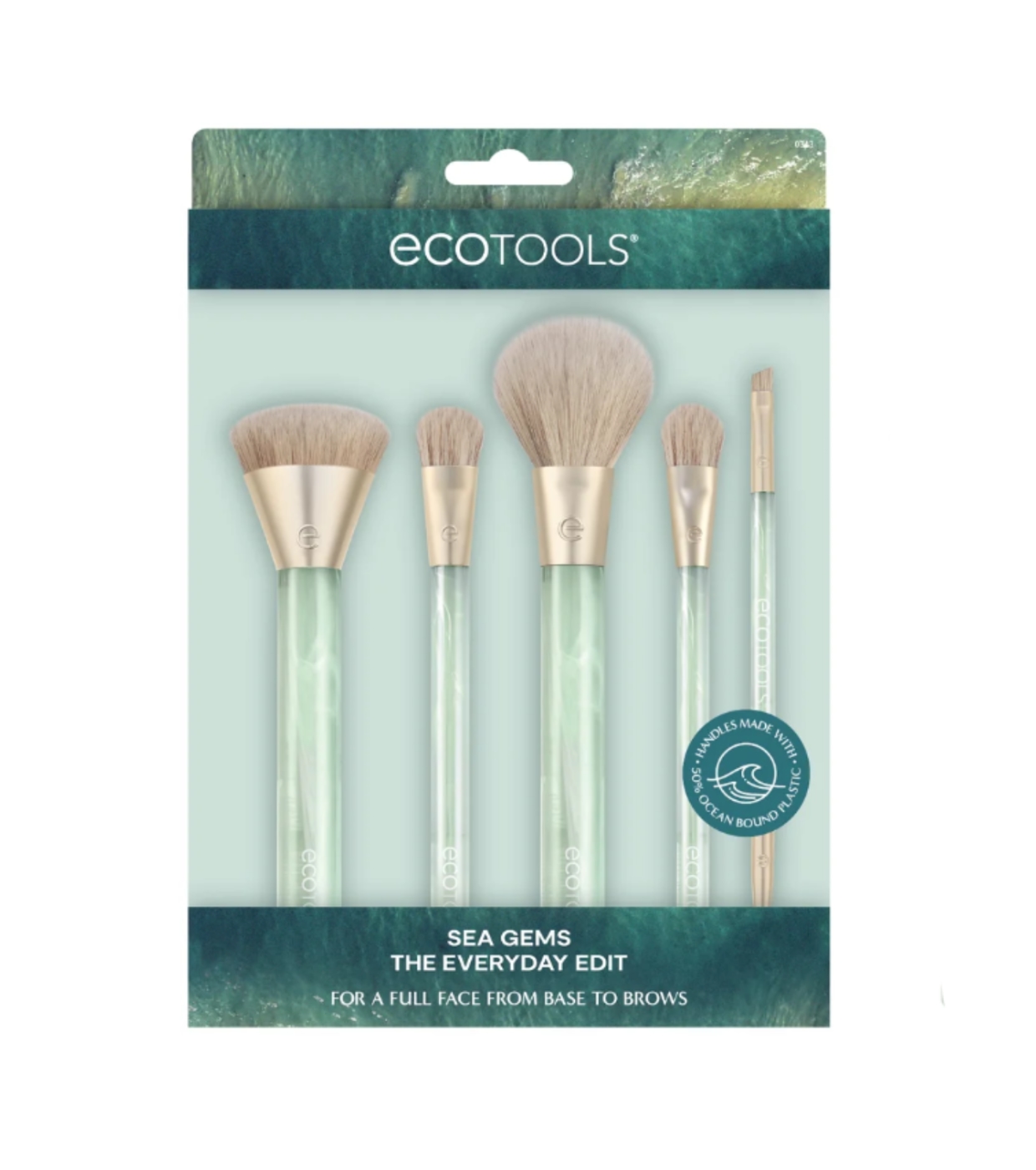 The Sea Gems Everyday Edit set from EcoTools includes 5 multi-function tools designed to create a complete face look using liquid, cream, stick, or powder products.