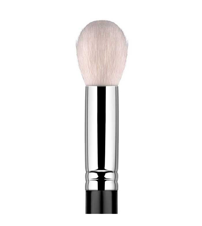 This Eigshow brush has natural flame-shaped bristles for an even application of powder, blush, and highlighter.