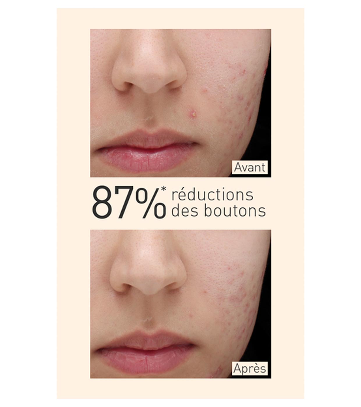 It is a treatment that reduces 6 different types of imperfections: blackheads – redness – pimples – blackheads – marks – sebum, and that rebalances and improves the quality of the skin.