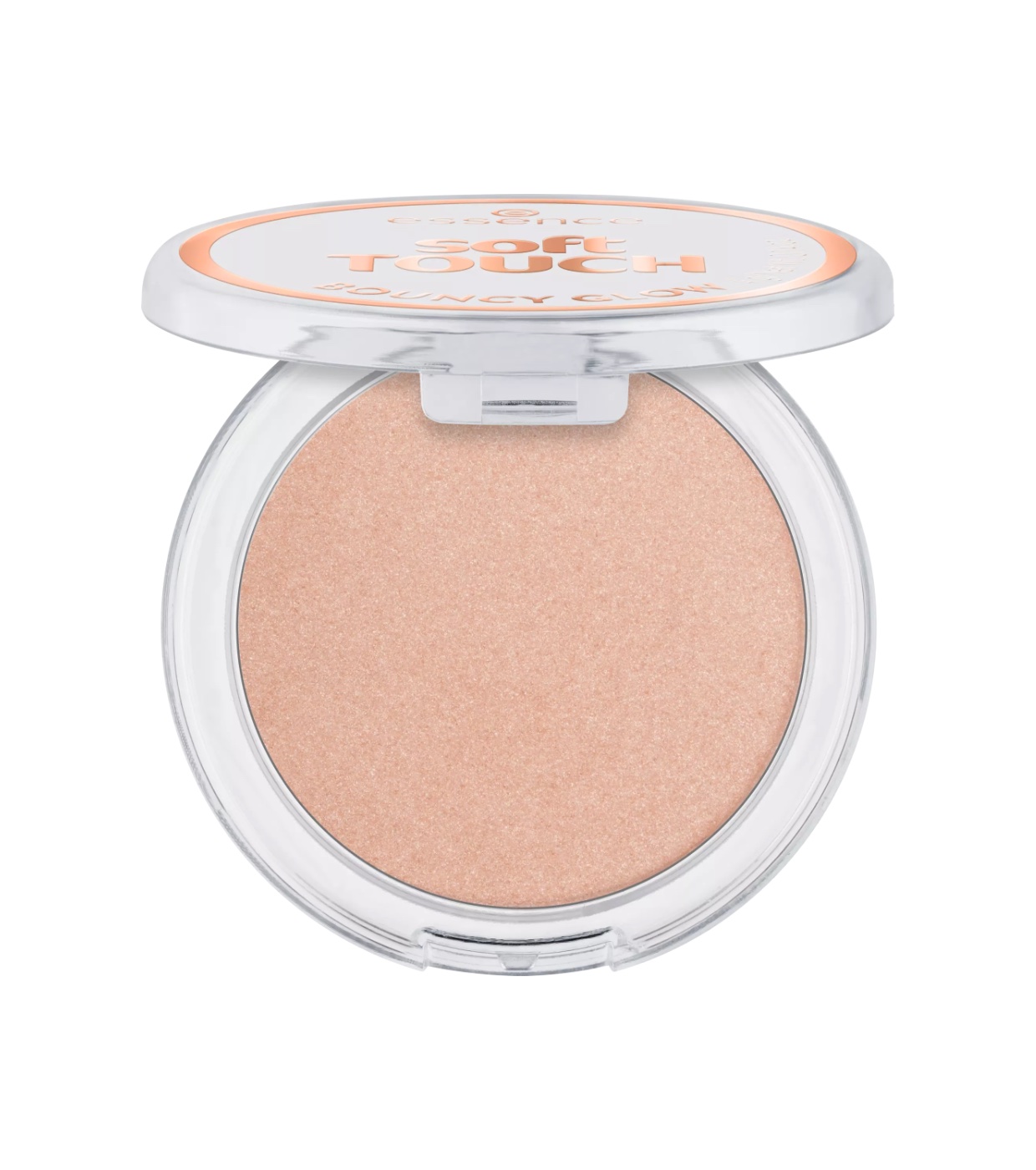 Essence Soft Touch Bouncy Glow is an innovative highlighter with a flexible, sensorial texture that transforms into a silky, powdery finish upon application.