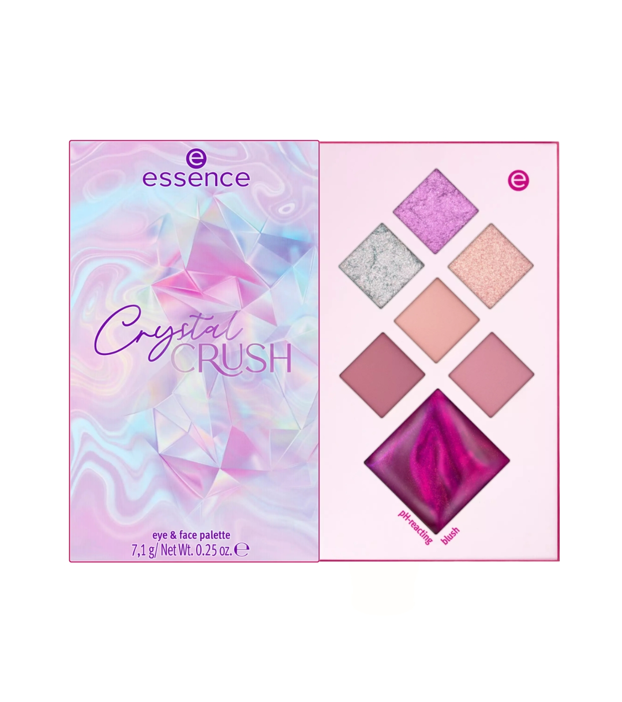 Illuminate your makeup routine with the power of crystals and discover the CRYSTAL CRUSH eye and face palette from essence .