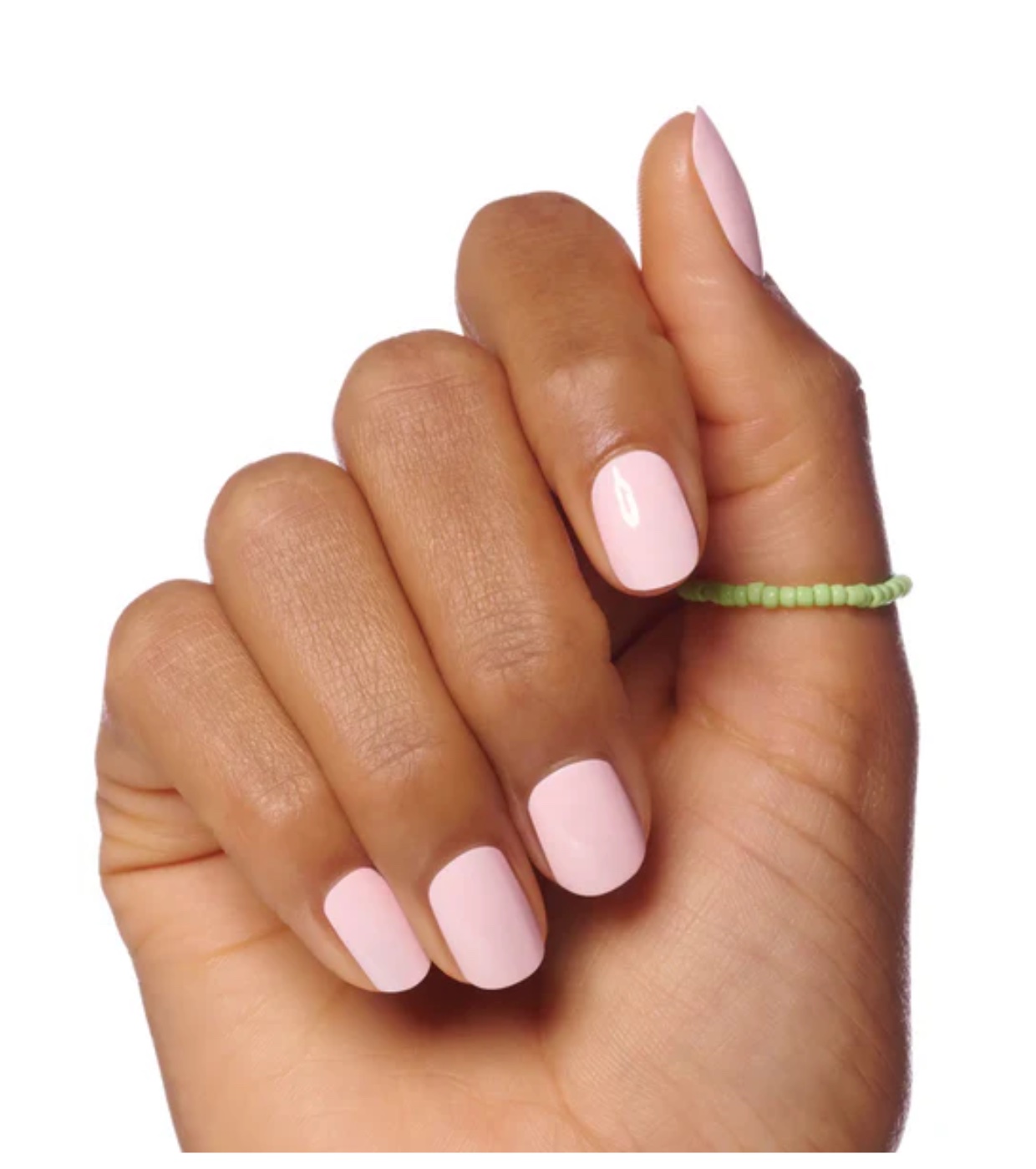 This pastel pink polish is your ticket to soft glamour and the on-trend “clean girl” look.