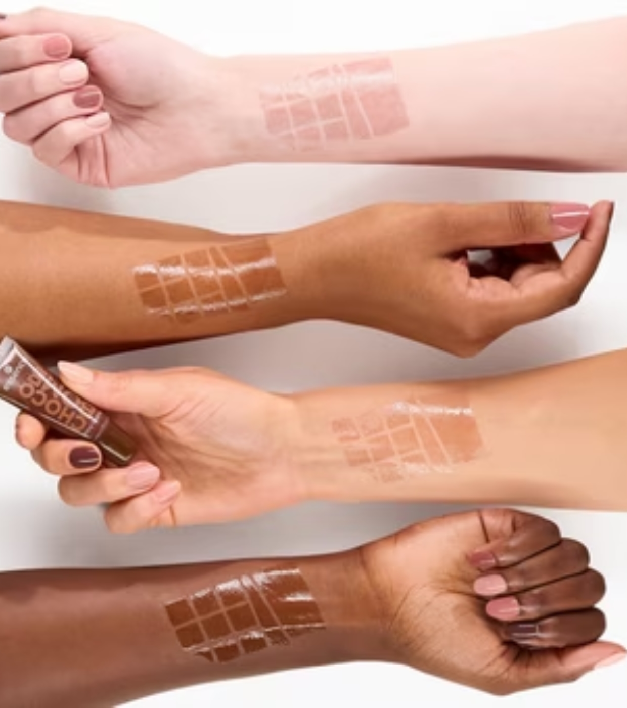 essence essence lip gloss is a brown gloss with golden sparkles and a delicious chocolate scent.
