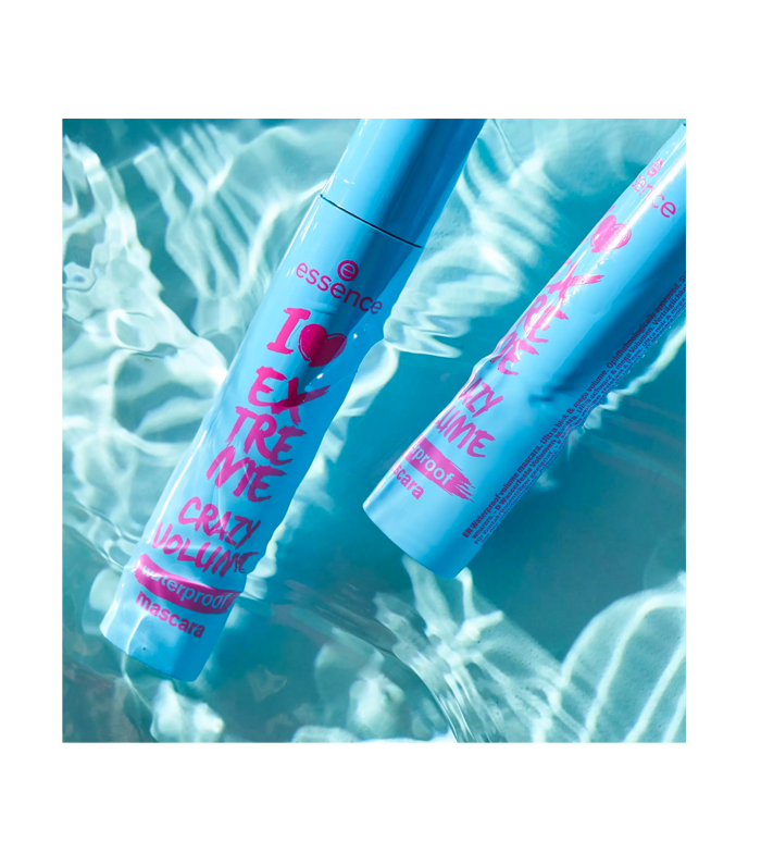 Get lashes with extra volume and also waterproof with the I Love Extreme Crazy Volumen mascara by essence .