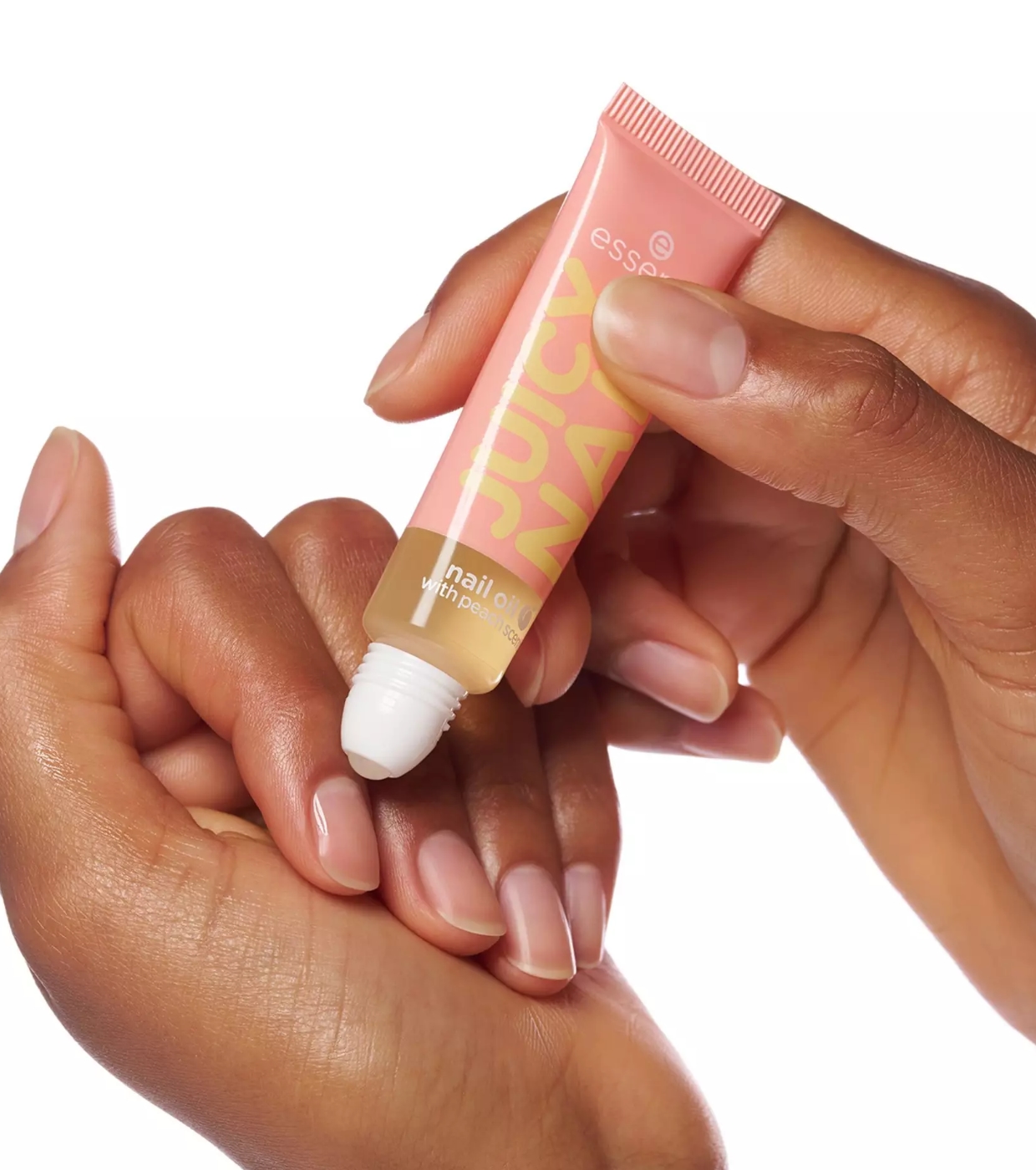 Essence Juicy Nail Oil is the nourishing oil in roll-on format that cares for and pampers your nails and cuticles quickly and conveniently.