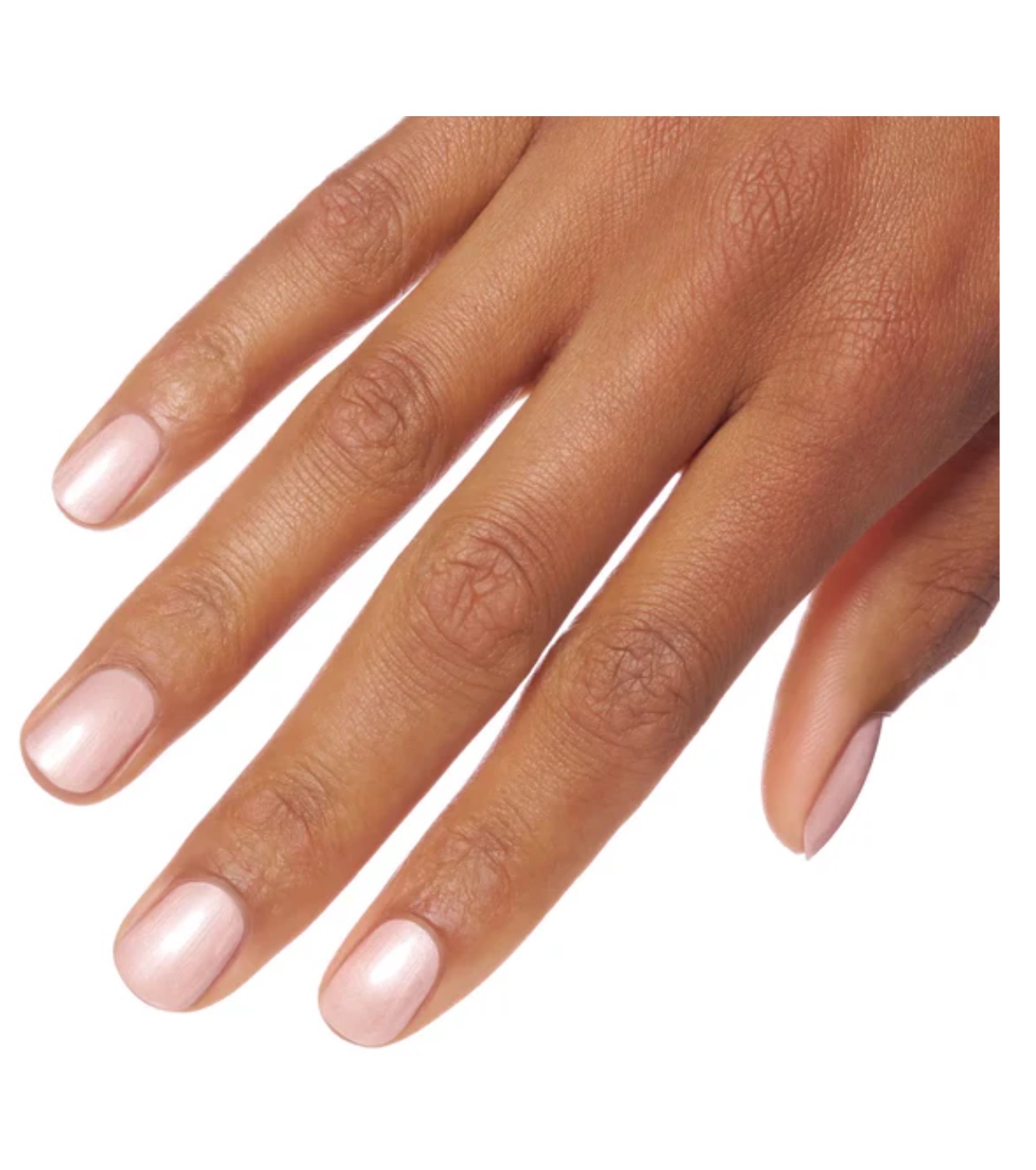 This pearly pink polish is your ticket to soft glamour and the on-trend “clean girl” look.