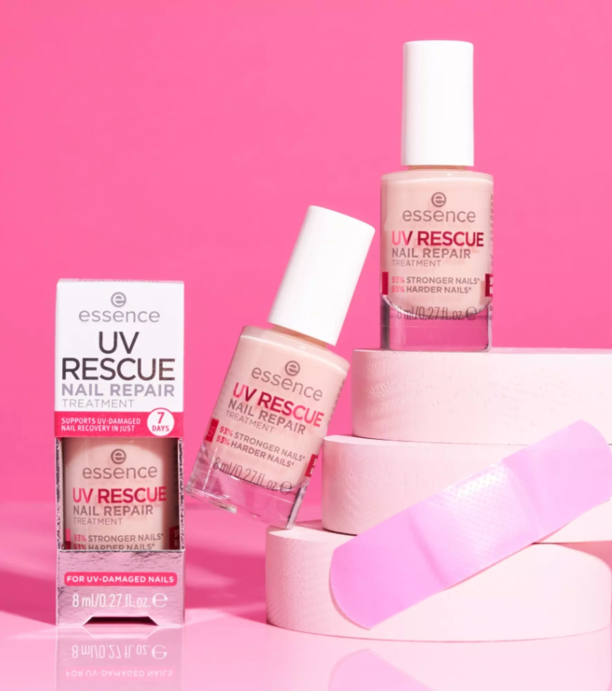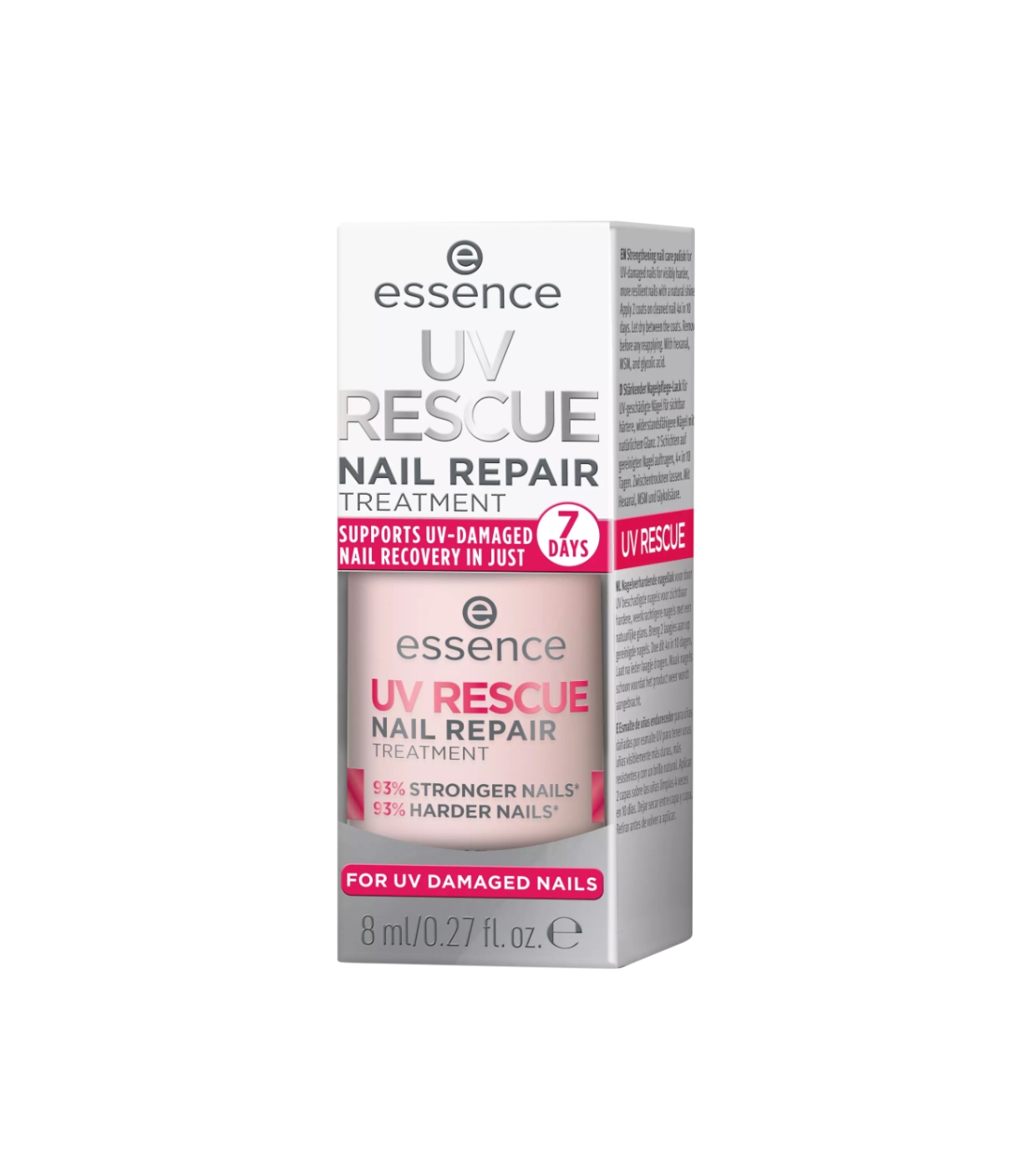 Restore strength and shine to your nails with essence 's UV Rescue nail repair treatment , the ideal repair treatment after UV gel manicures.