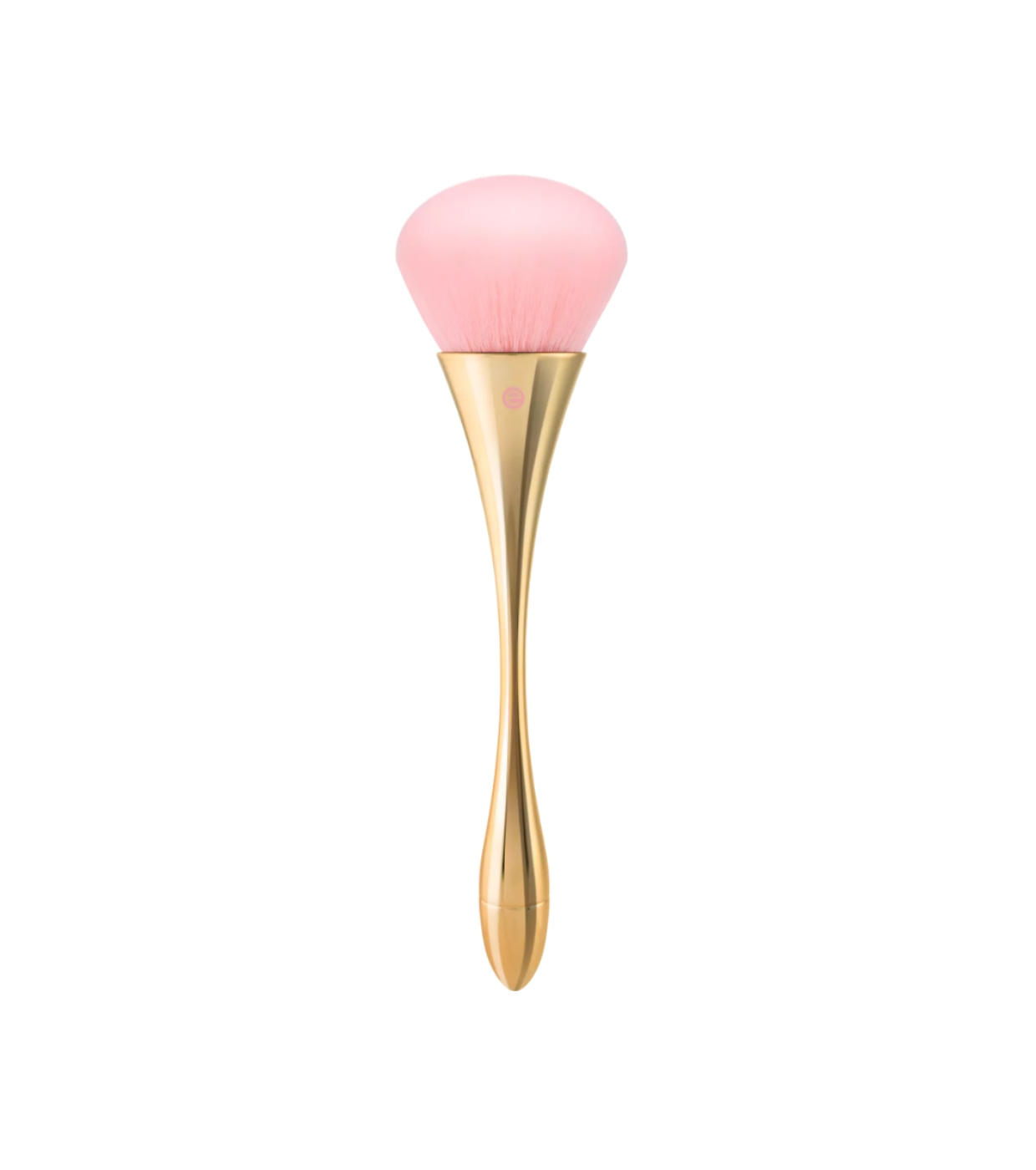 Its ultra-soft synthetic hair in a light pink tone and its golden handle give it an elegant, delicate finish that perfectly matches the spirit of the collection.