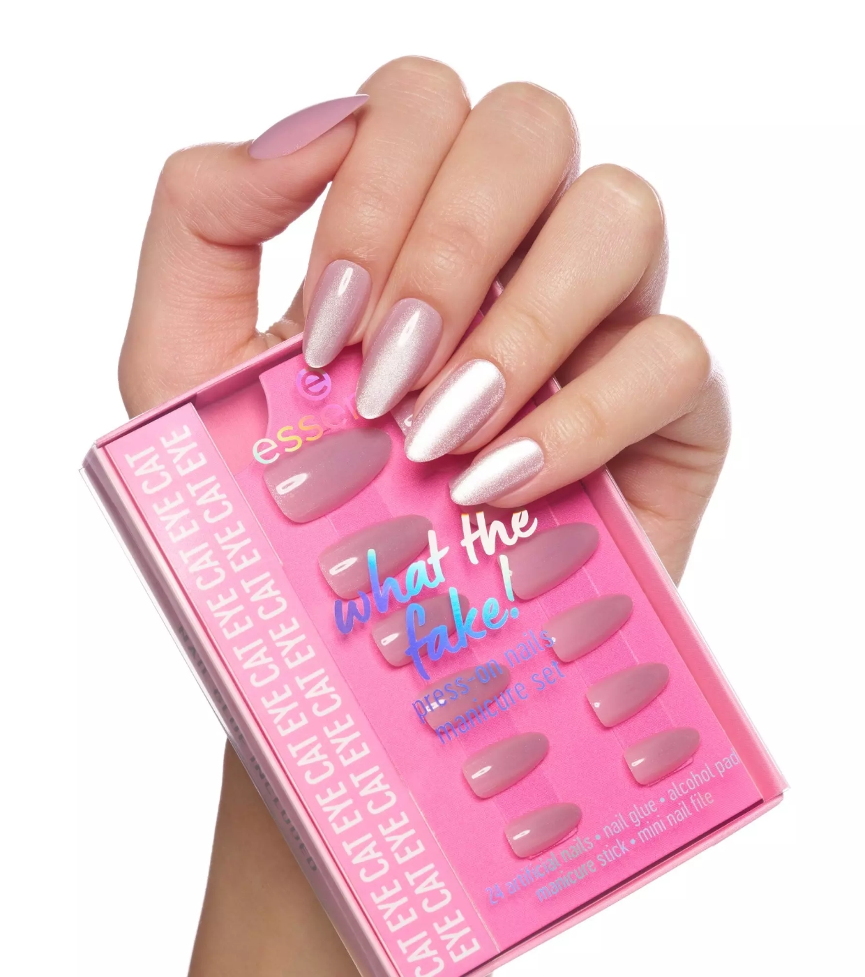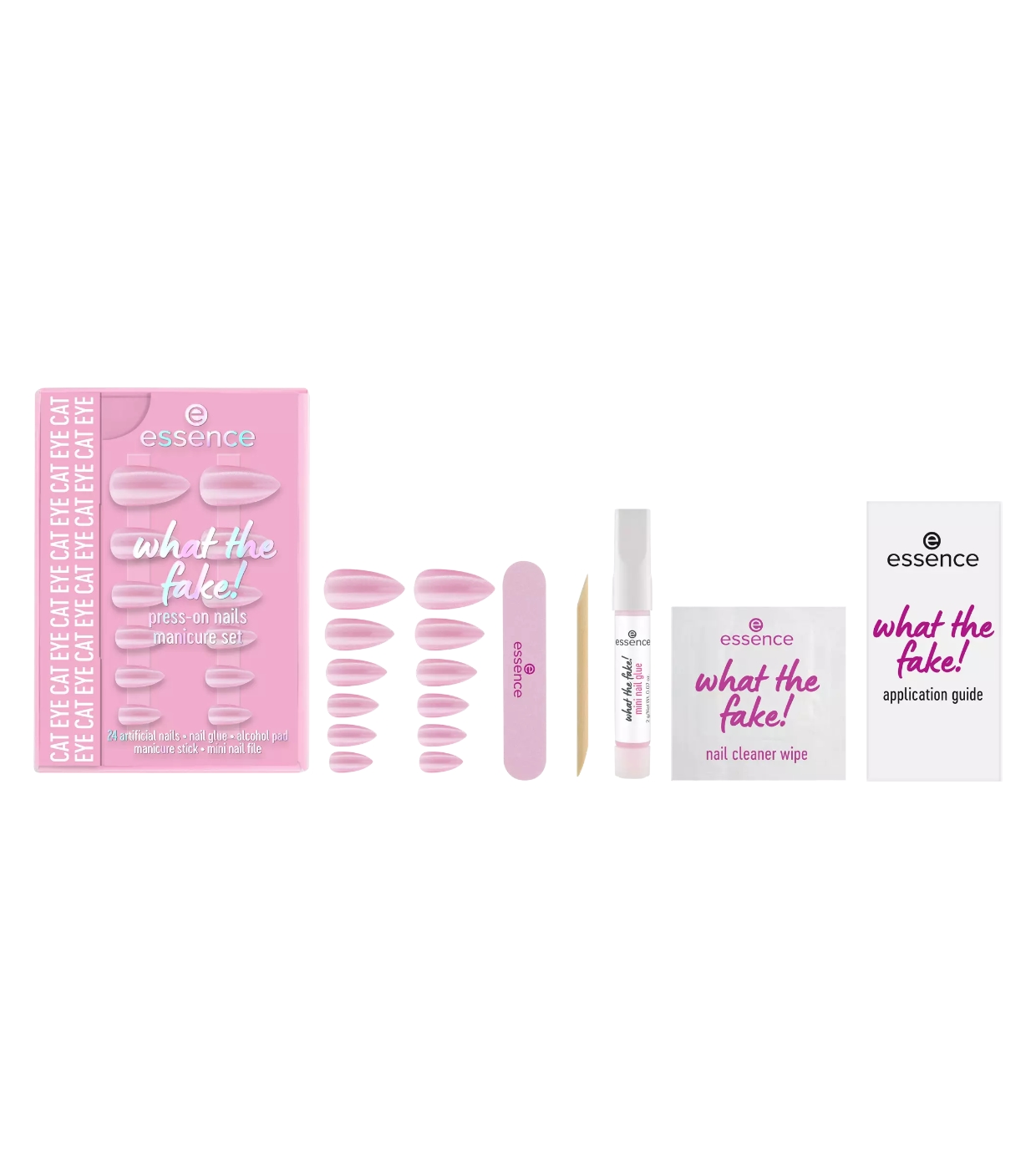 The set also includes nail glue, a manicure stick, a mini nail file, and a nail cleansing wipe—all the essentials for a smooth, long-lasting manicure.