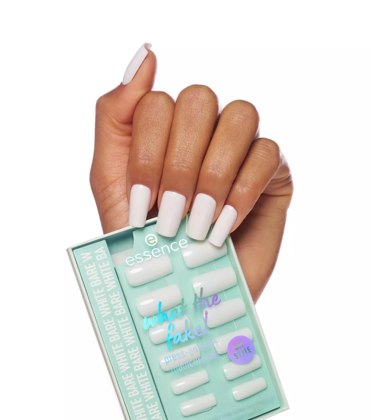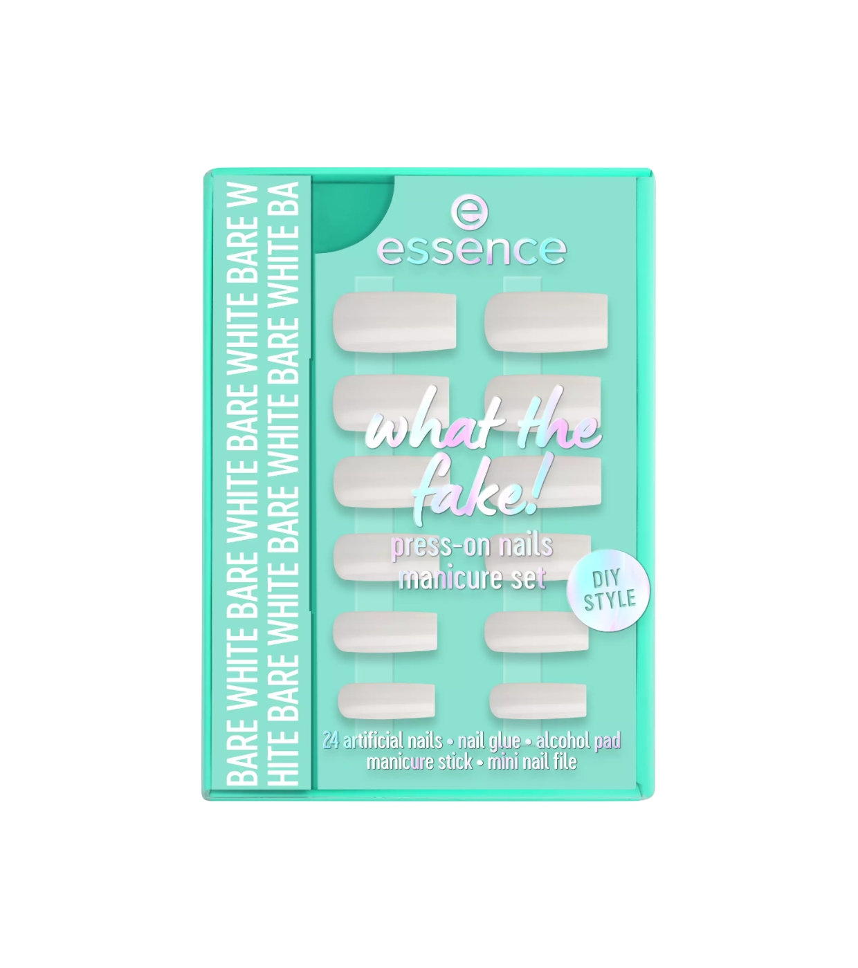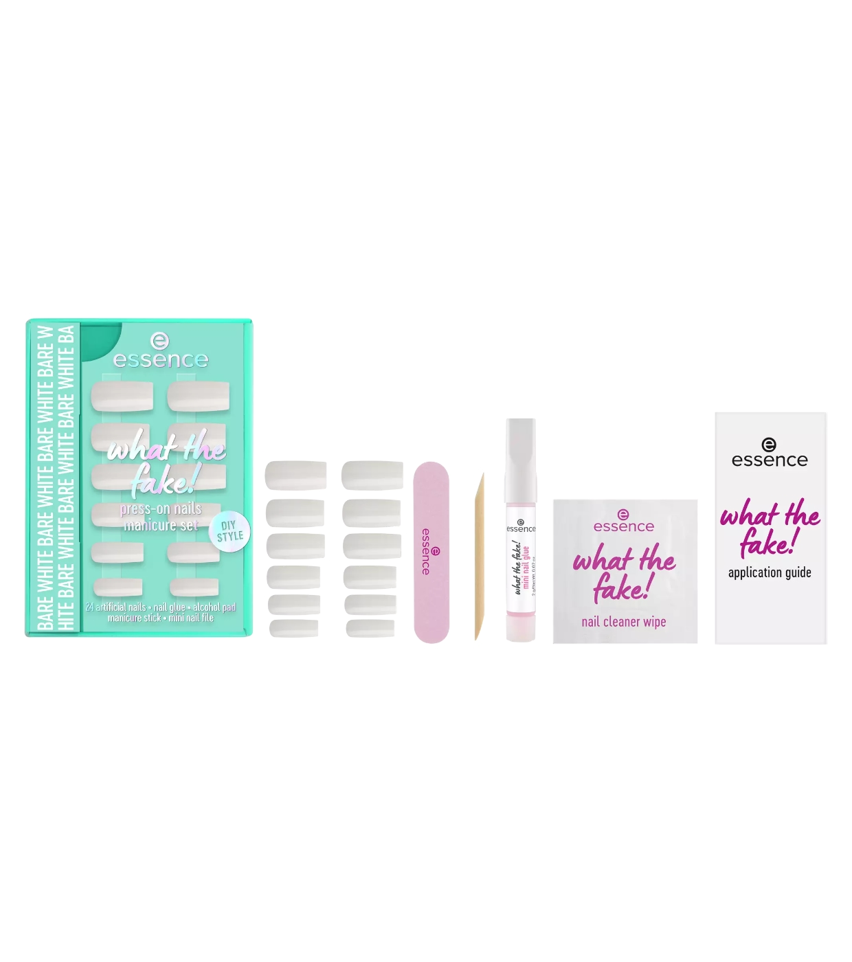 The set also includes nail glue, a manicure stick, a mini nail file, and a nail cleansing wipe—all the essentials for a smooth, long-lasting manicure.