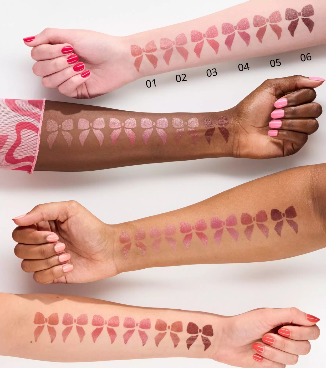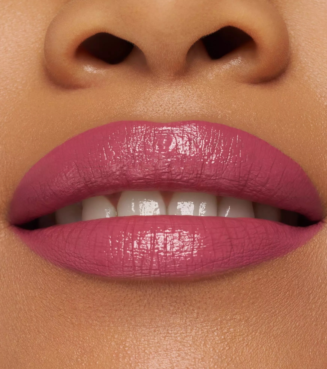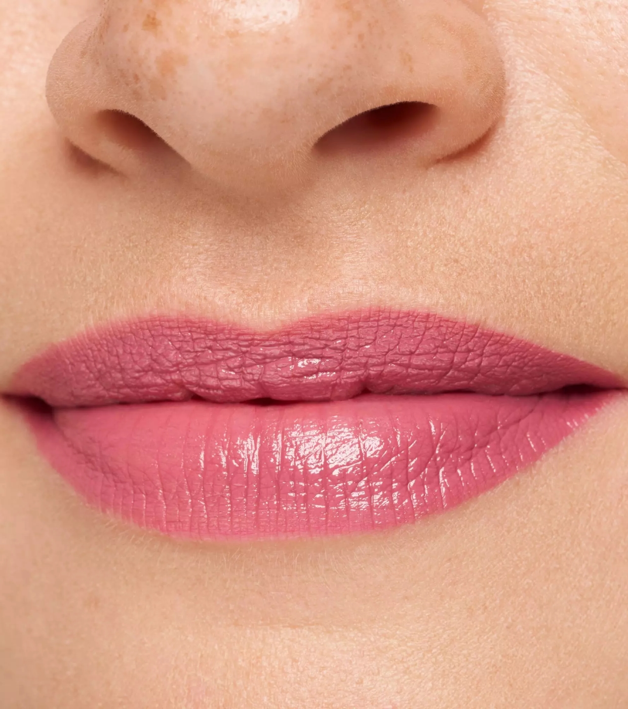 Its creamy, highly pigmented formula offers full coverage in a single stroke, leaving lips soft and comfortable for hours.