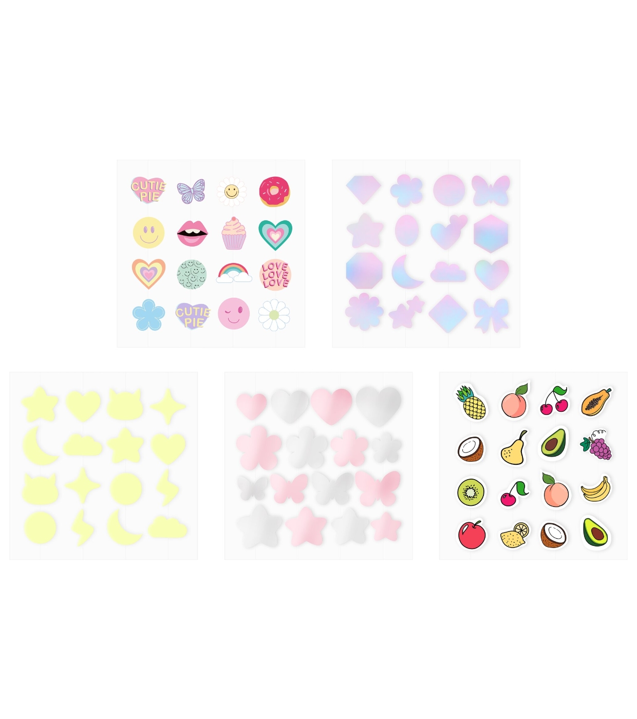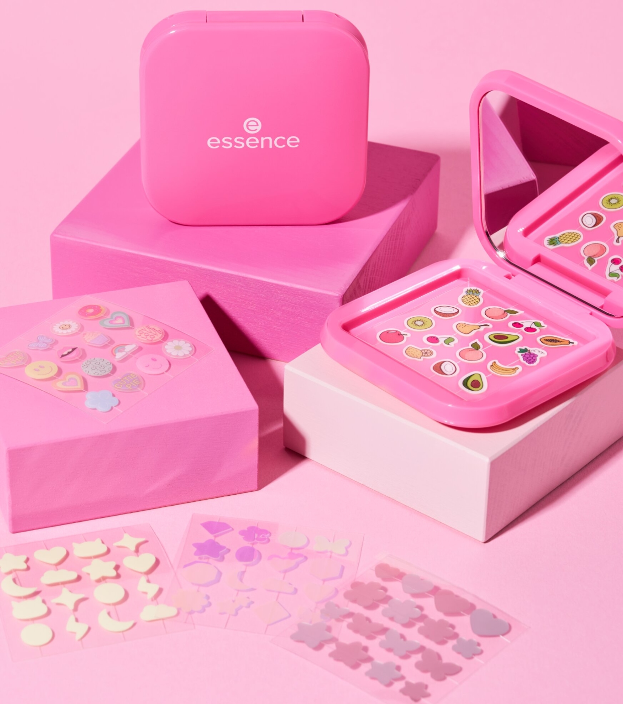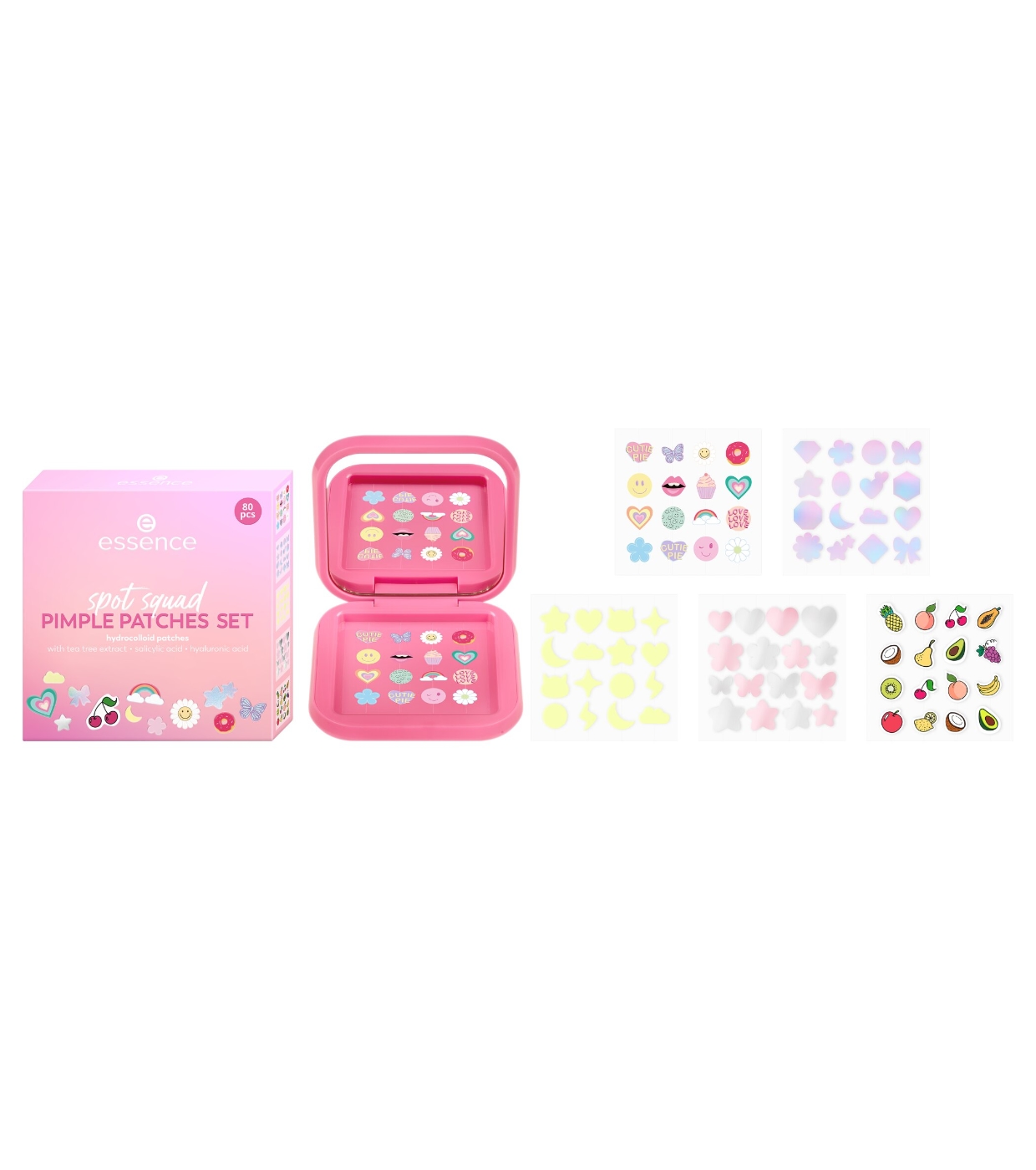 The essence acne patch set offers original acne patches with fun shapes and effects, such as metallic, holographic or glow-in-the-dark.