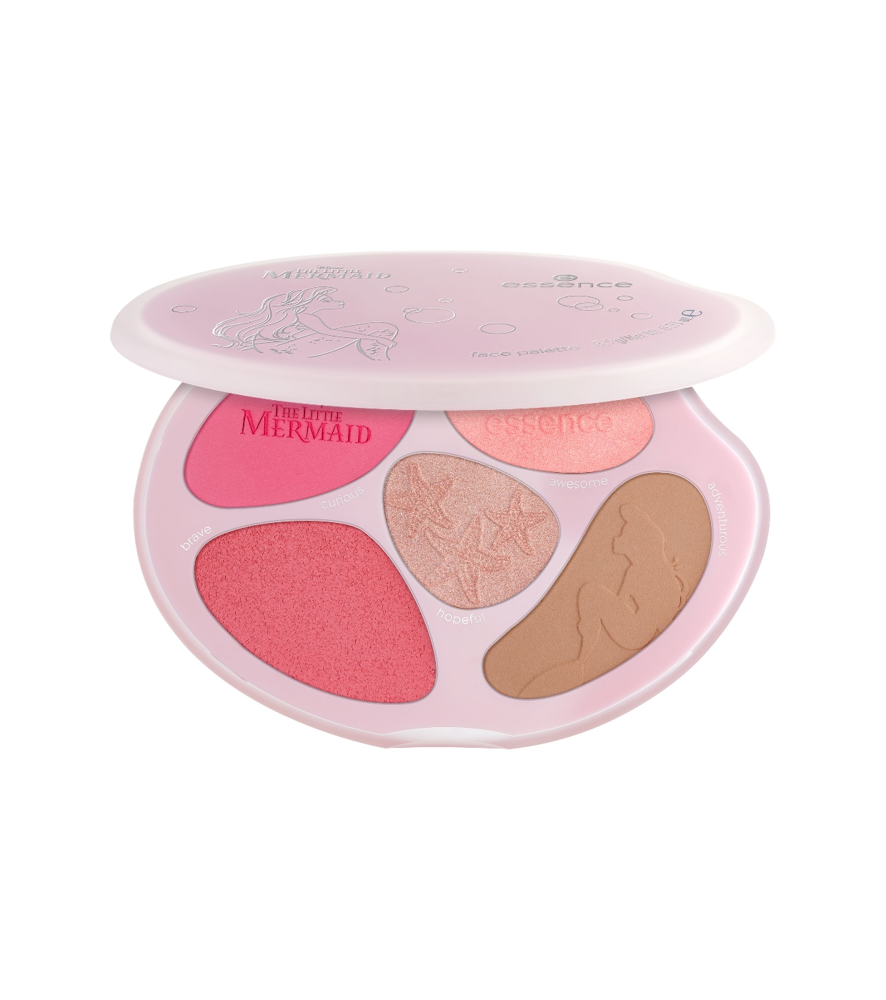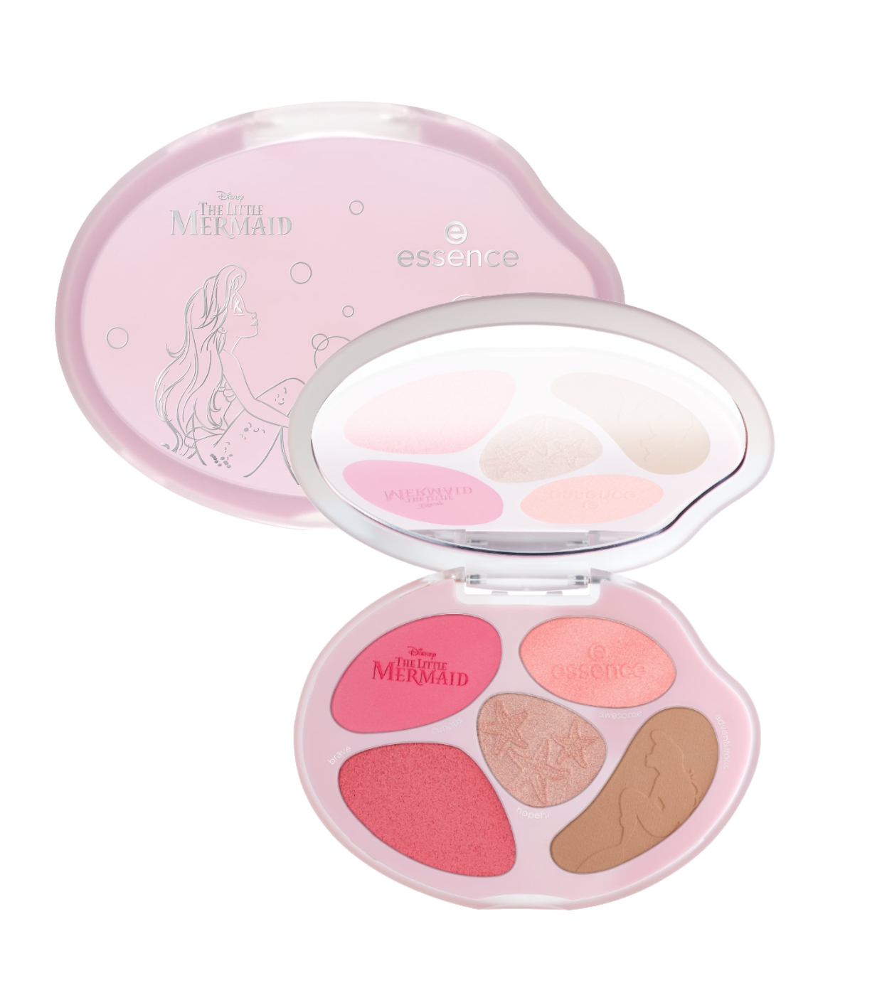 Enhance your face with the The Little Mermaid inspired face palette from essence x Disney, a face palette designed to bring color, luminosity and a radiant touch worthy of a mermaid.