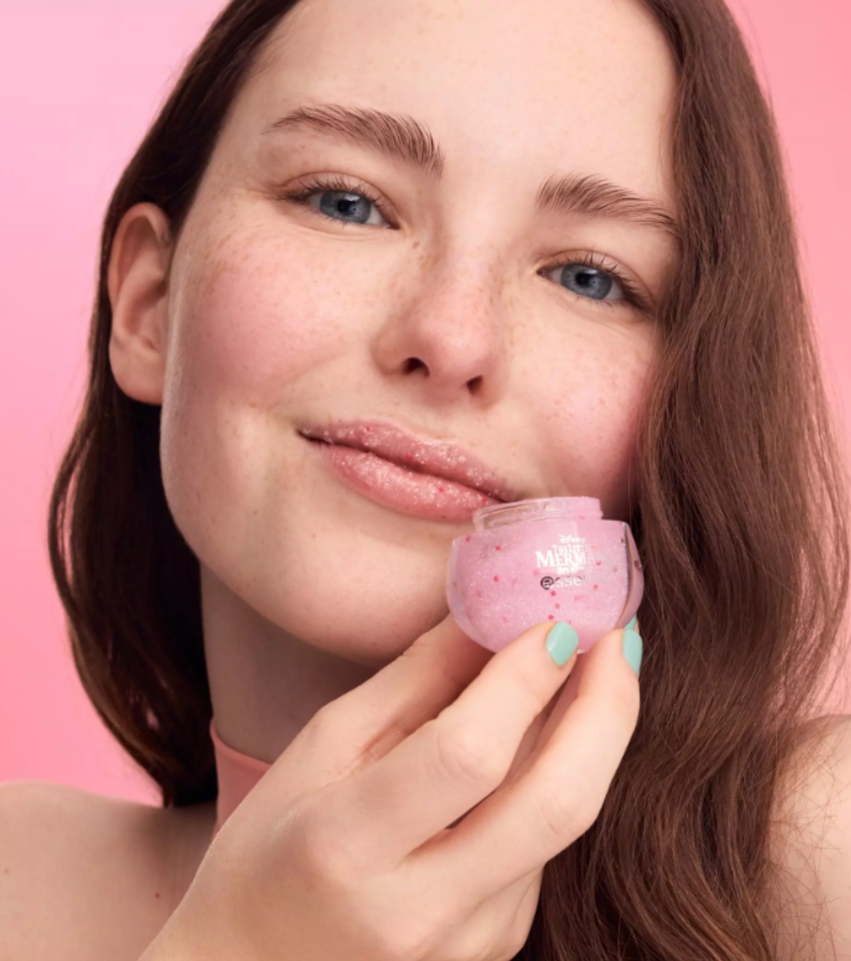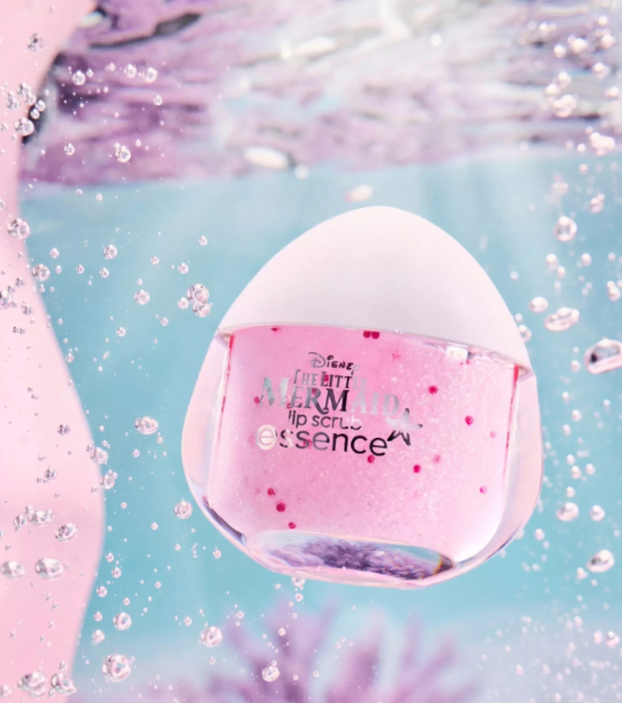 Prepare your lips for a perfect finish with the lip scrub from The Little Mermaid collection by essence x Disney .