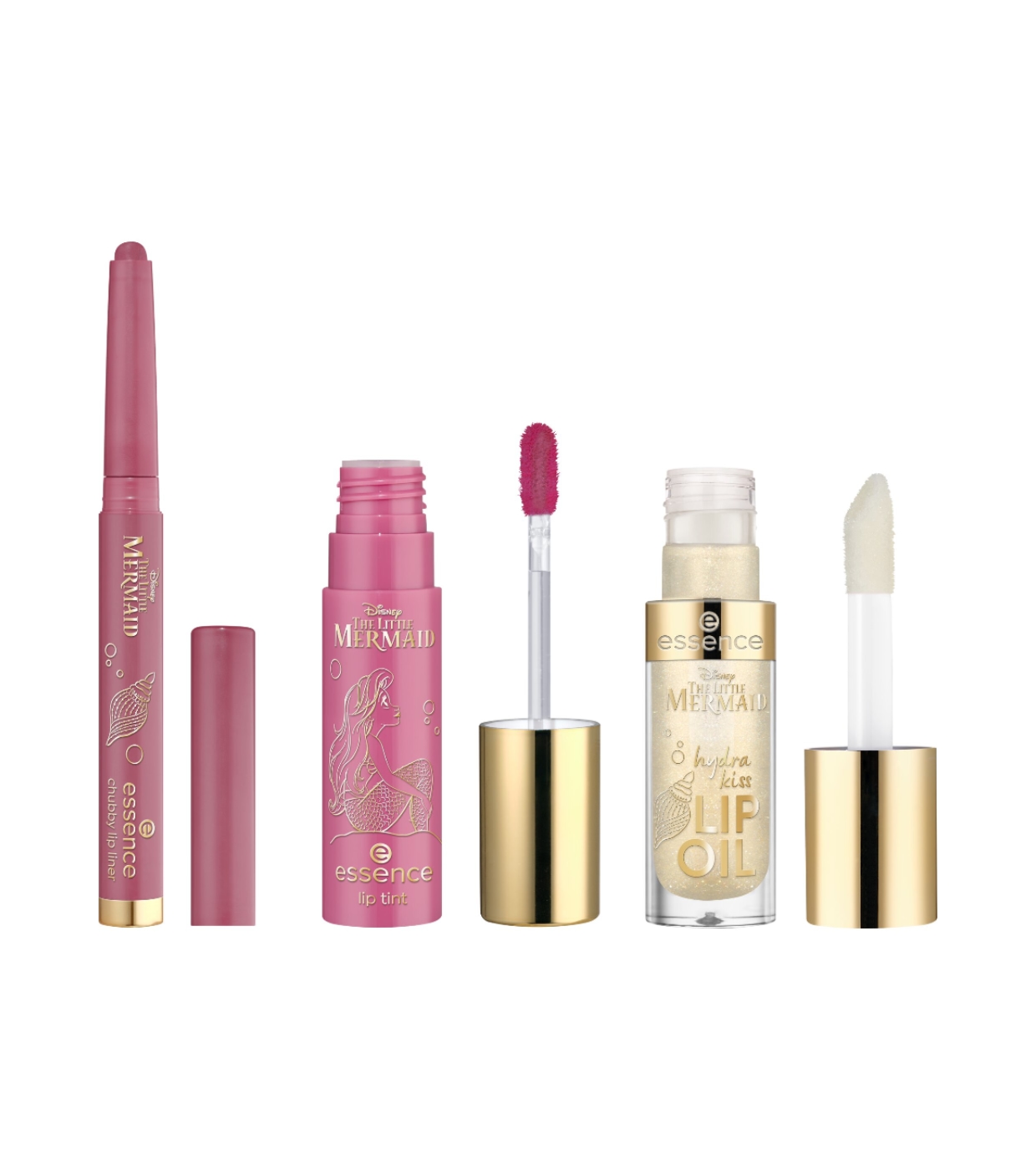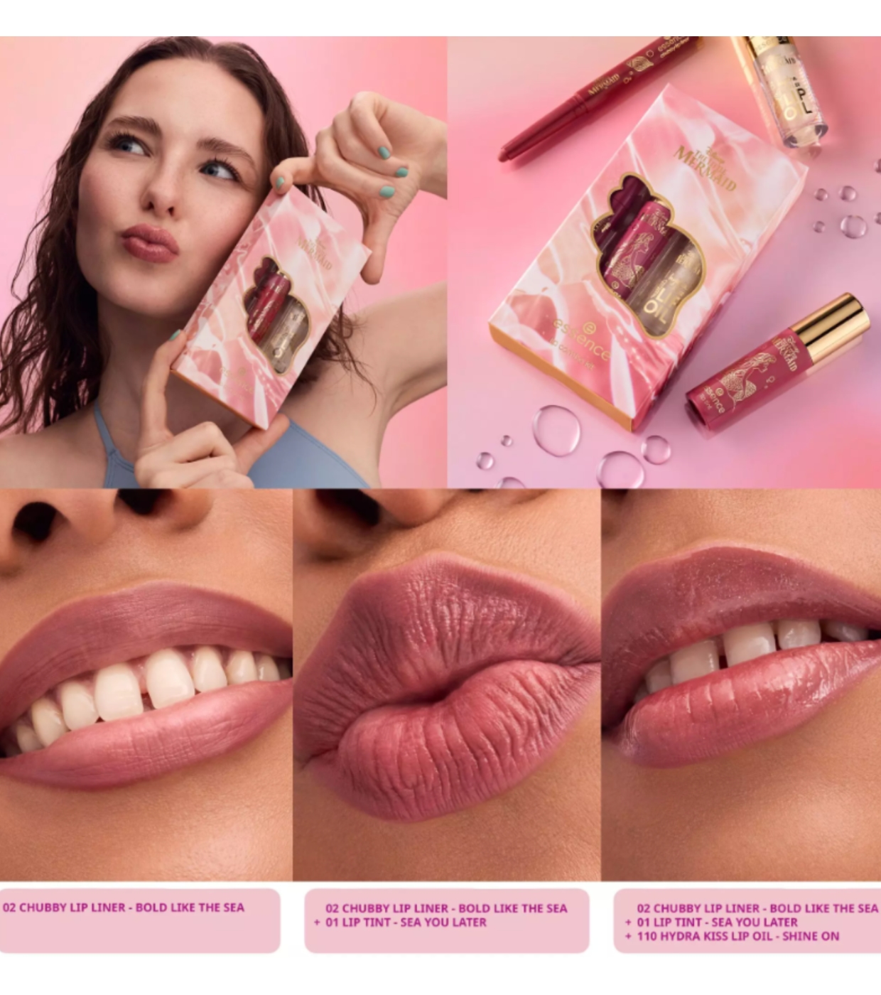 Get irresistible lips with the essence lip set , inspired by the magical universe of The Little Mermaid .