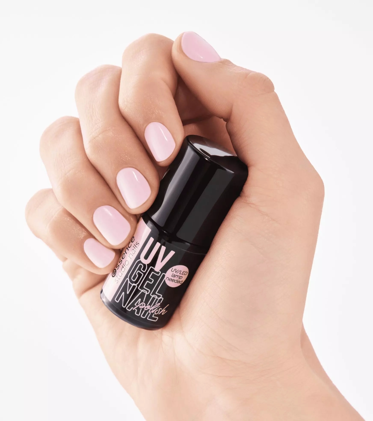 Application: Shake before use. 1. Push back cuticles, shape your natural nail as desired, and file gently with the essence 2-in-1 file. 2. Clean your nail with the essence UV GEL NAIL Cleanser and Wipes. 3. Apply a thin coat of essence UV GEL NAIL Base Coat. 4. Place your hands in the UV lamp (60 seconds at 36 watts). 5. Apply a coat of essence UV GEL NAIL Polish and repeat step 4. Repeat with a second coat. 6. Seal the nail with the essence UV GEL NAIL Top Coat and repeat step 4. 7. Wipe the nail vigorously with the wipe soaked in the essence UV GEL NAIL Cleanser. Important: Cover the tip of the nail with the polish during each step. Remove the polish with gel nail polish remover according to the application instructions.