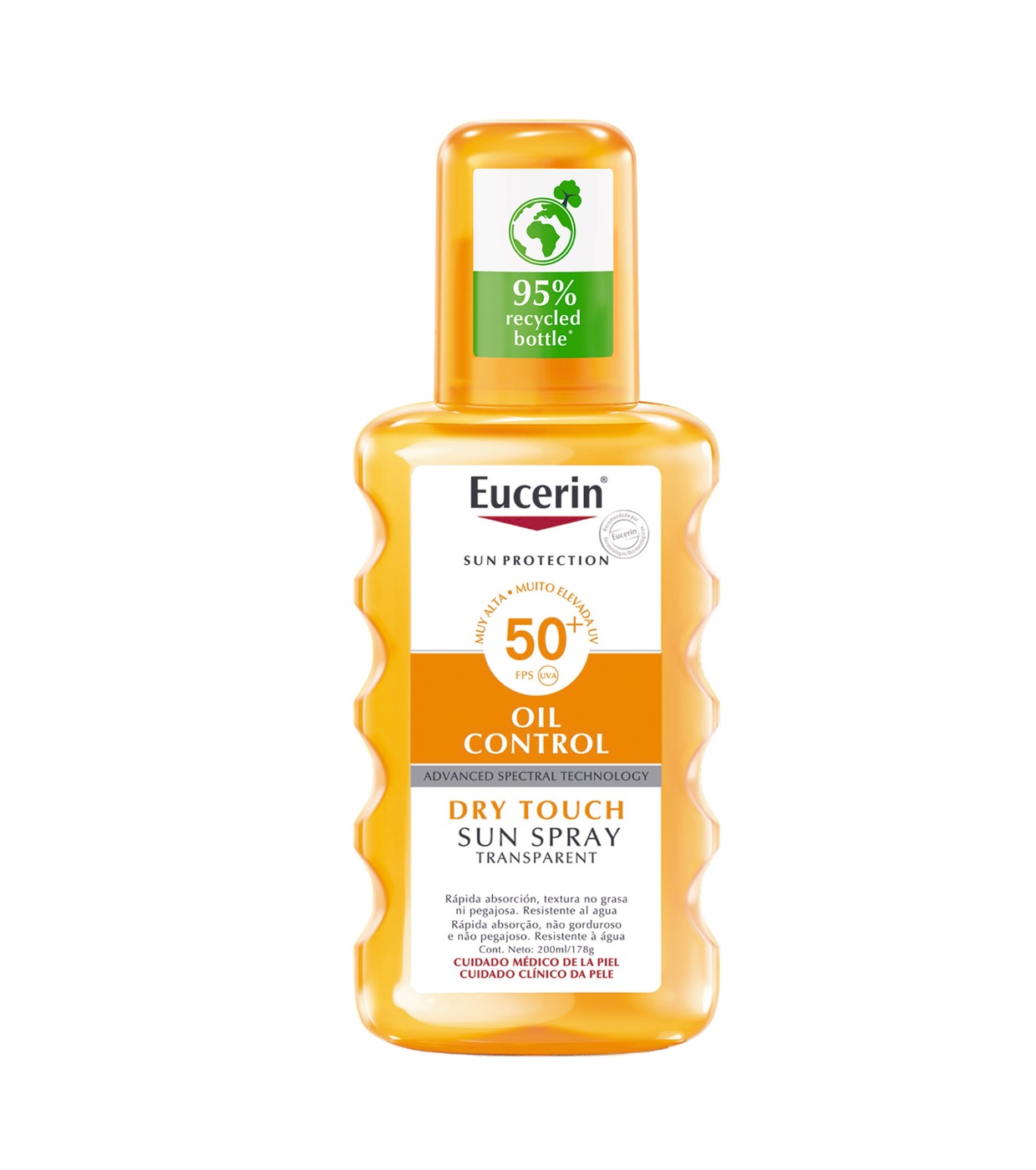 Clear body sunscreen spray Oil Control SPF50+ from Eucerin.