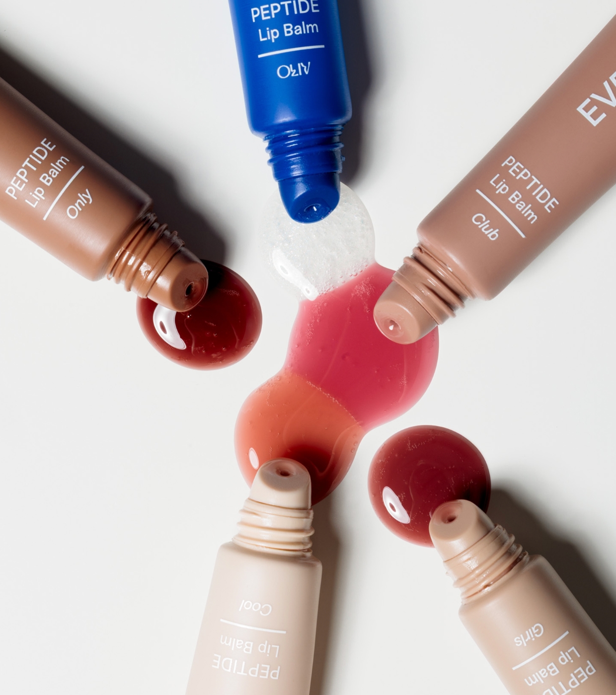 Each box contains one of the five new shades of peptide lip balms, presented in a stylish and modernly designed package.