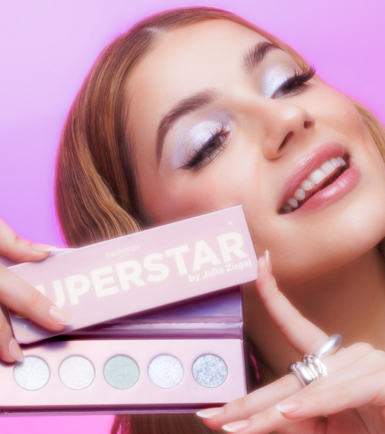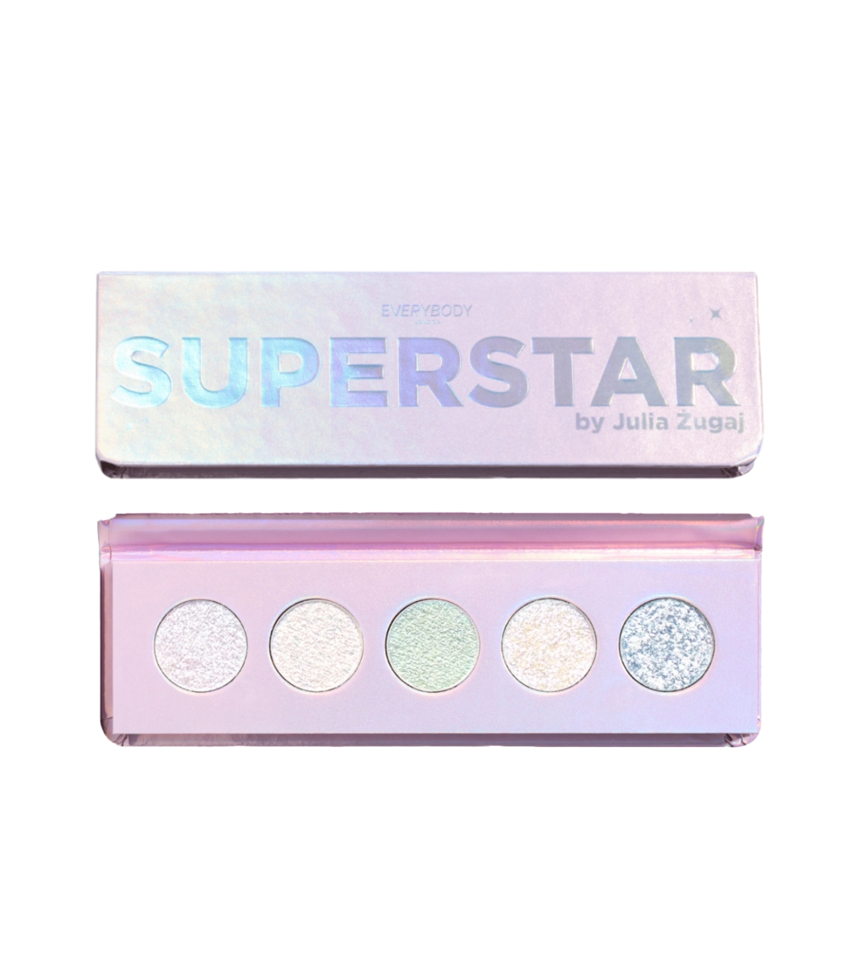 Stand out with a luminous and vibrant look thanks to the Superstar eyeshadow palette from Everybody London , created in collaboration with influencer Julia Żugaj.