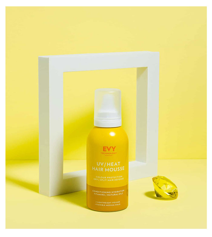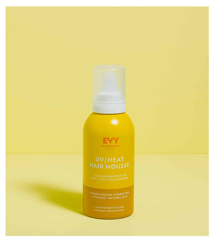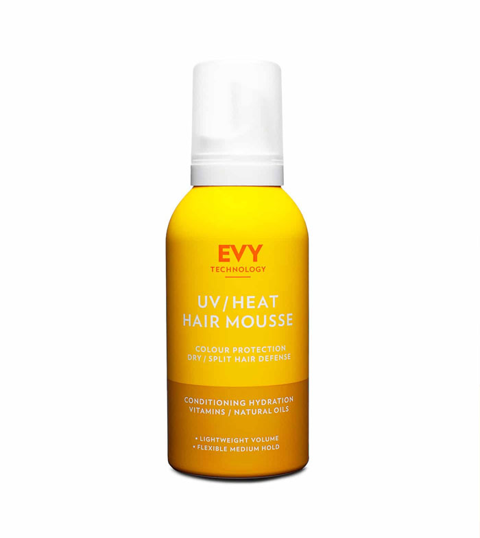 Evy Technology UV/Heat hair protection mousse is extra light, nourishing for all hair types and protects, nourishes and repairs at the same time.