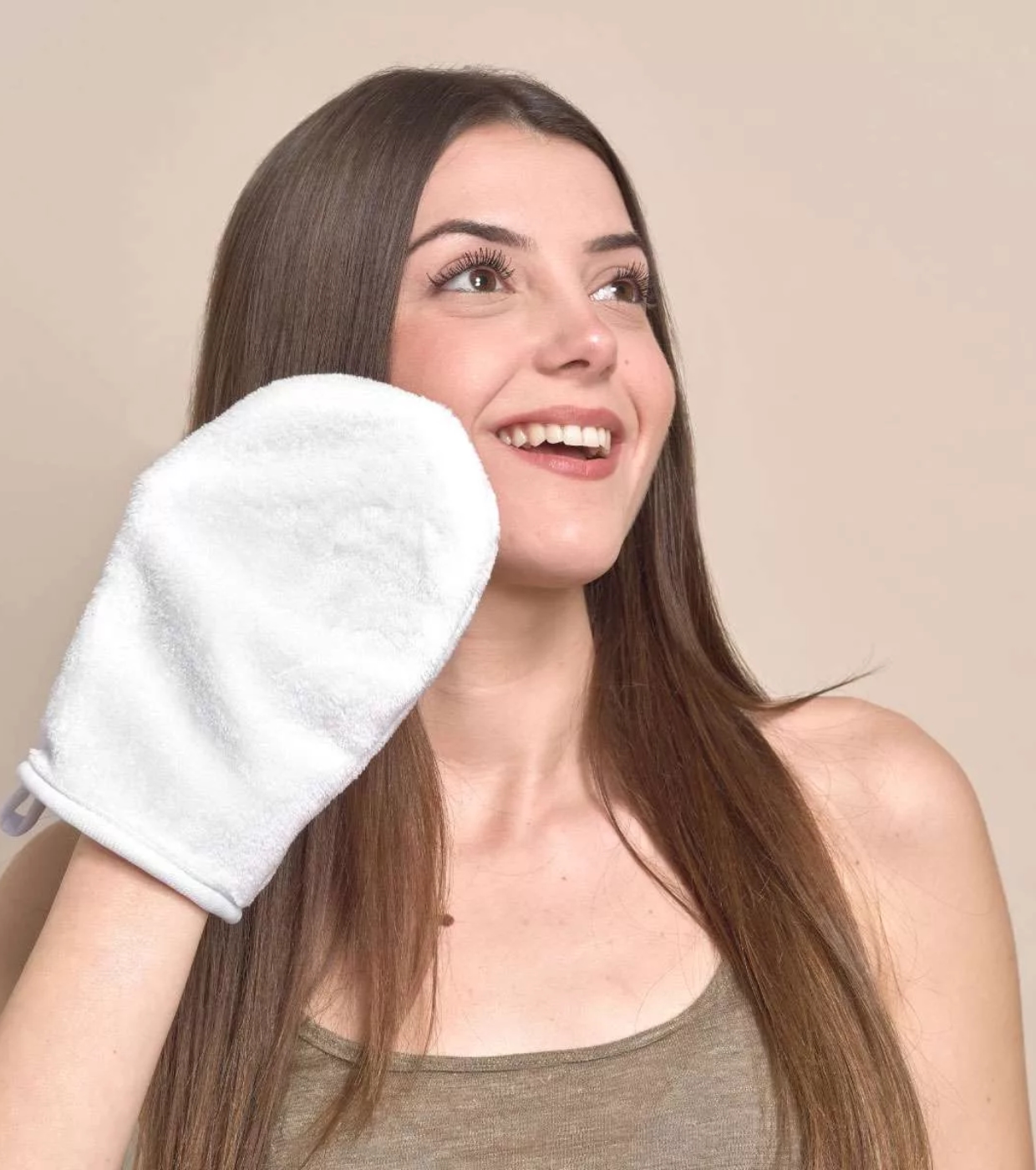 Discover the most comfortable and respectful way for your skin (and the planet) to remove your makeup every day with the reusable Makeup Remover Facial Glove from Flor de Mayo .