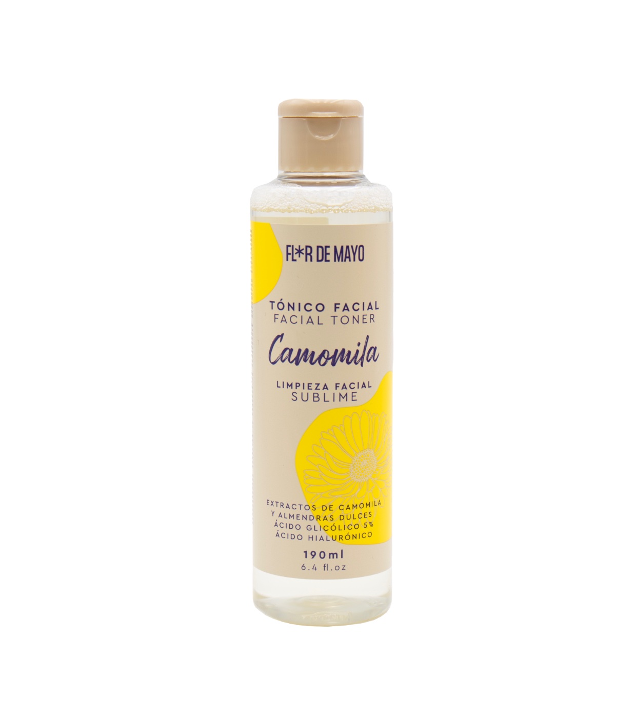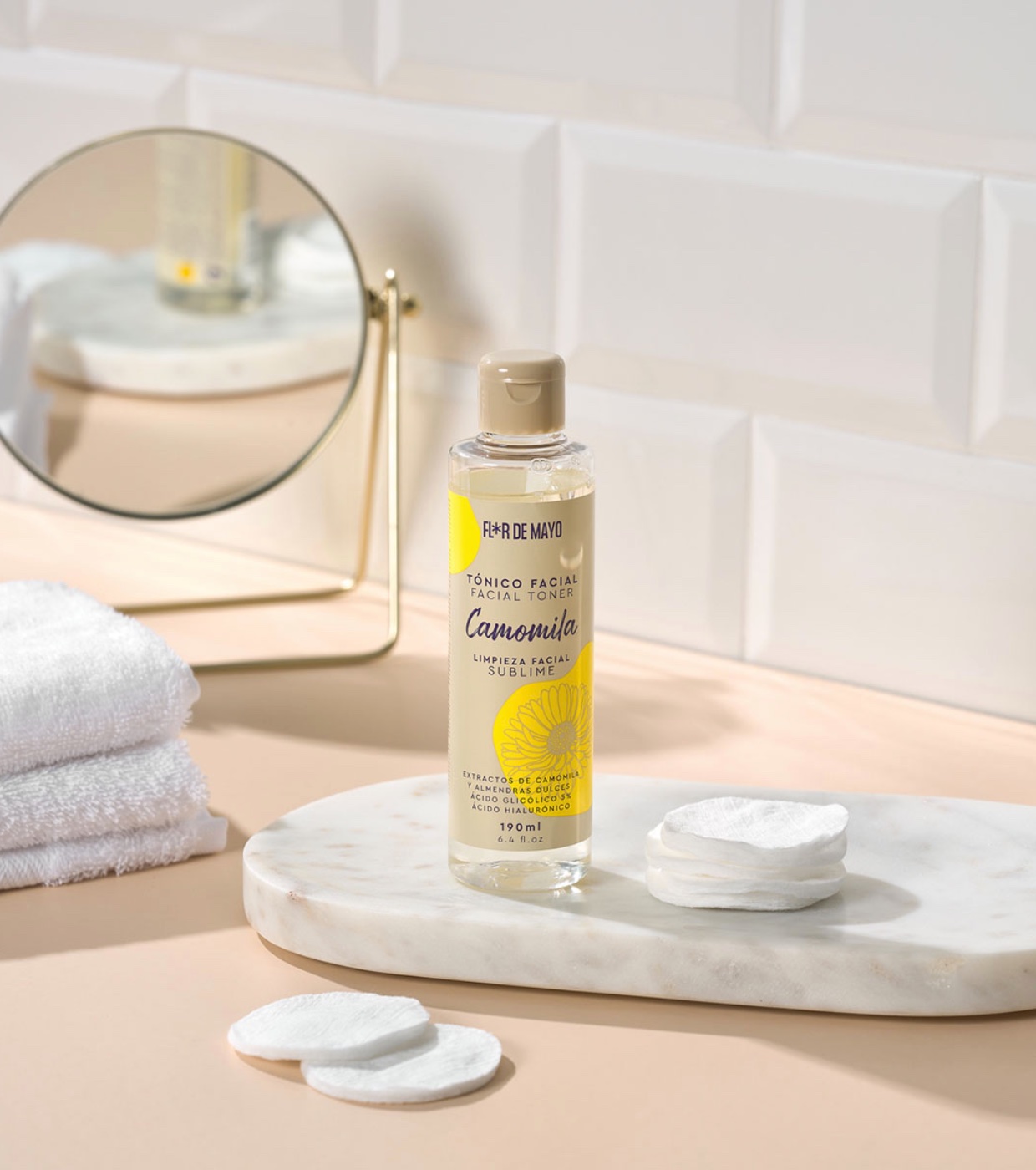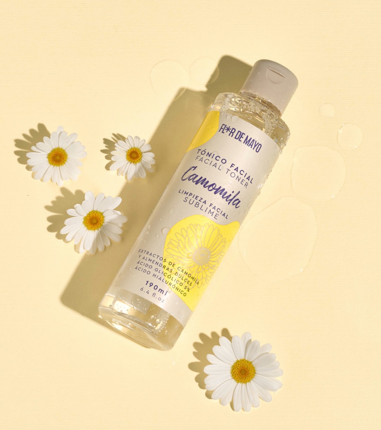 A facial toner made with chamomile and glycolic acid that cleanses and hydrates as well as revitalizing.