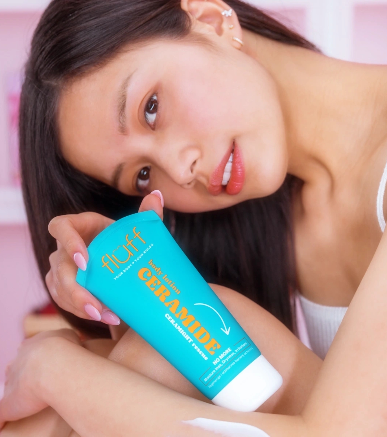 Give your skin the comfort it needs with this Fluff body lotion with ceramides, formulated to deeply hydrate, soothe irritation and strengthen the skin barrier.