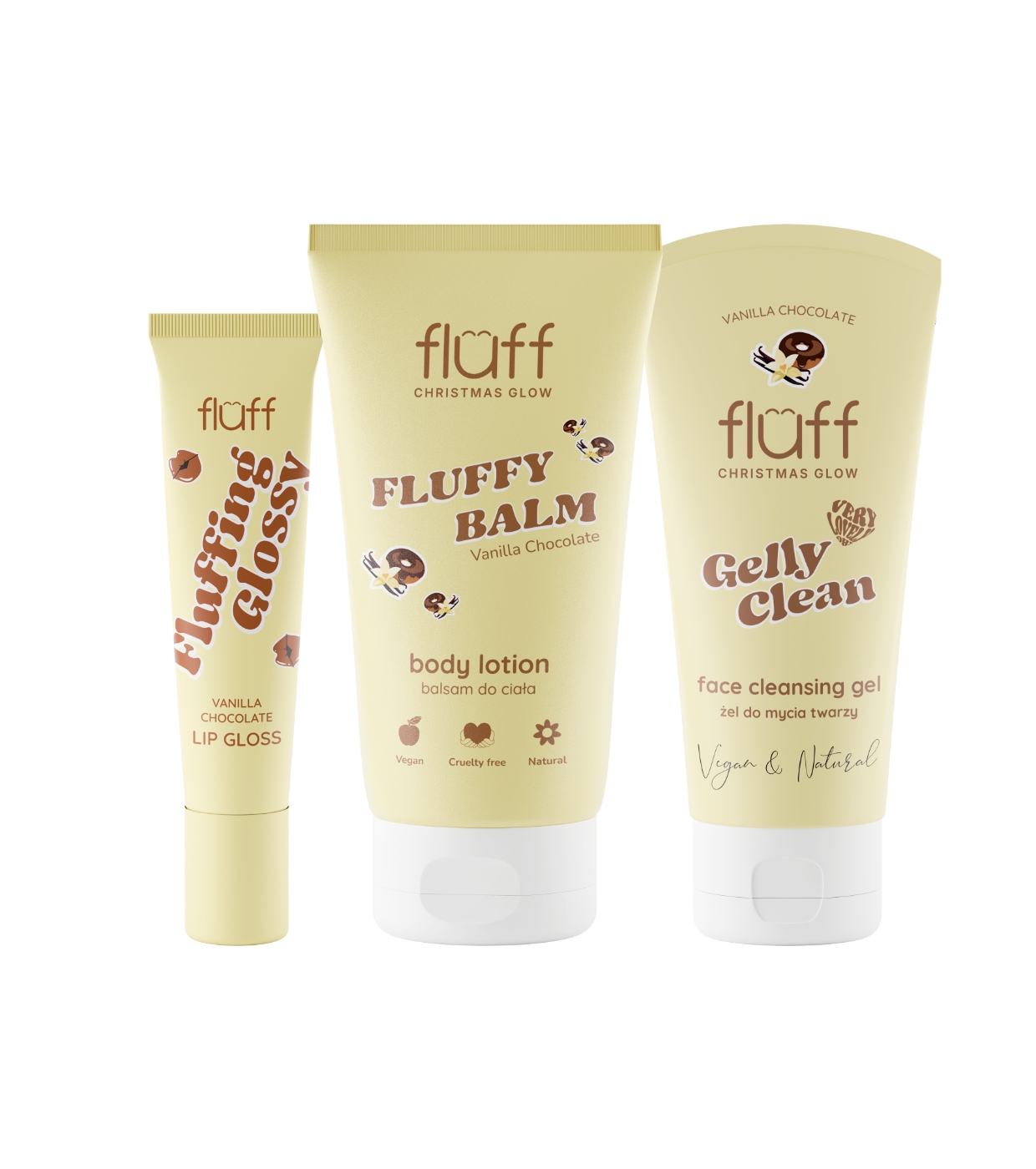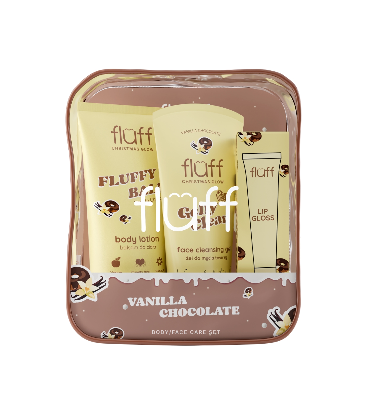 The Vanilla Chocolate body care set by Fluff combines body and facial care with an irresistible vanilla and chocolate scent that turns your routine into a moment of pure pleasure.