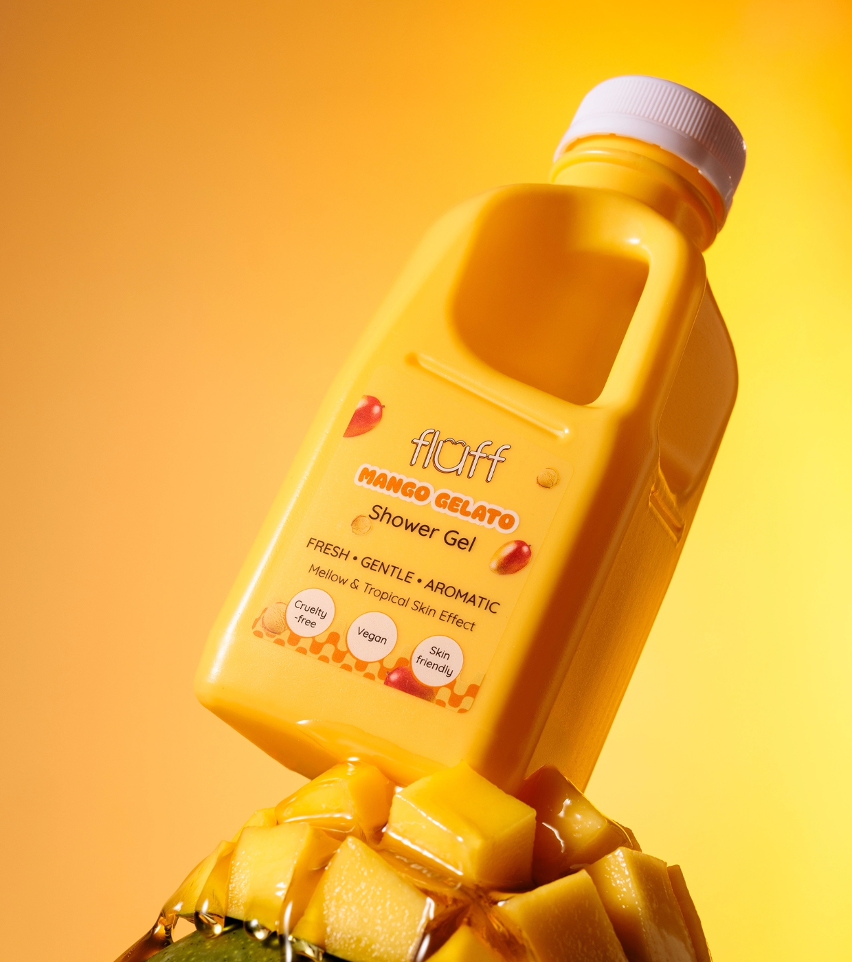 Fluff's Fluff shower gel smells like ripe, juicy mango, turning your routine into an irresistible moment you'll want to extend for a few more minutes.