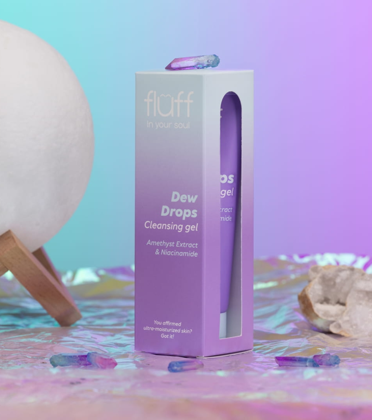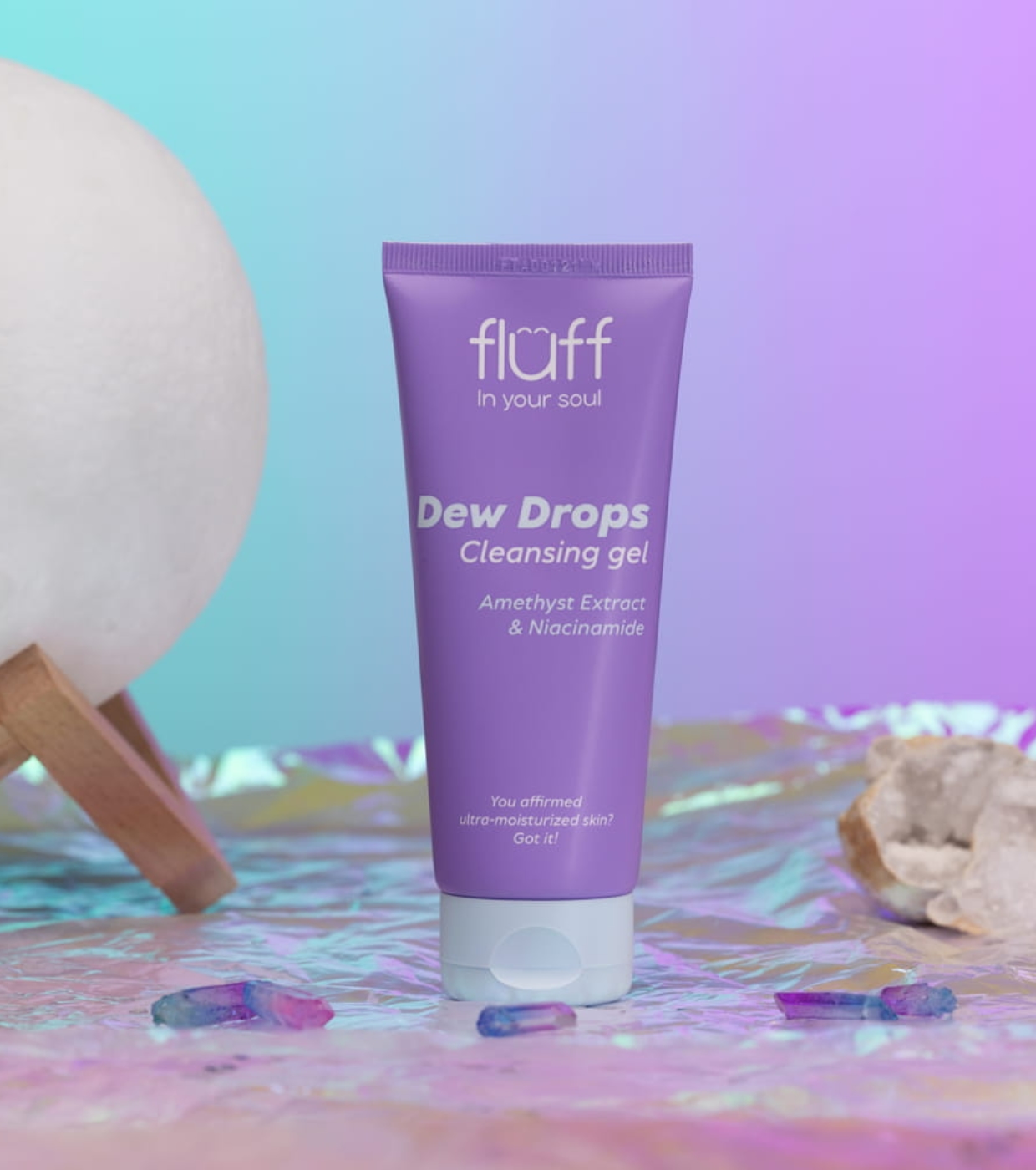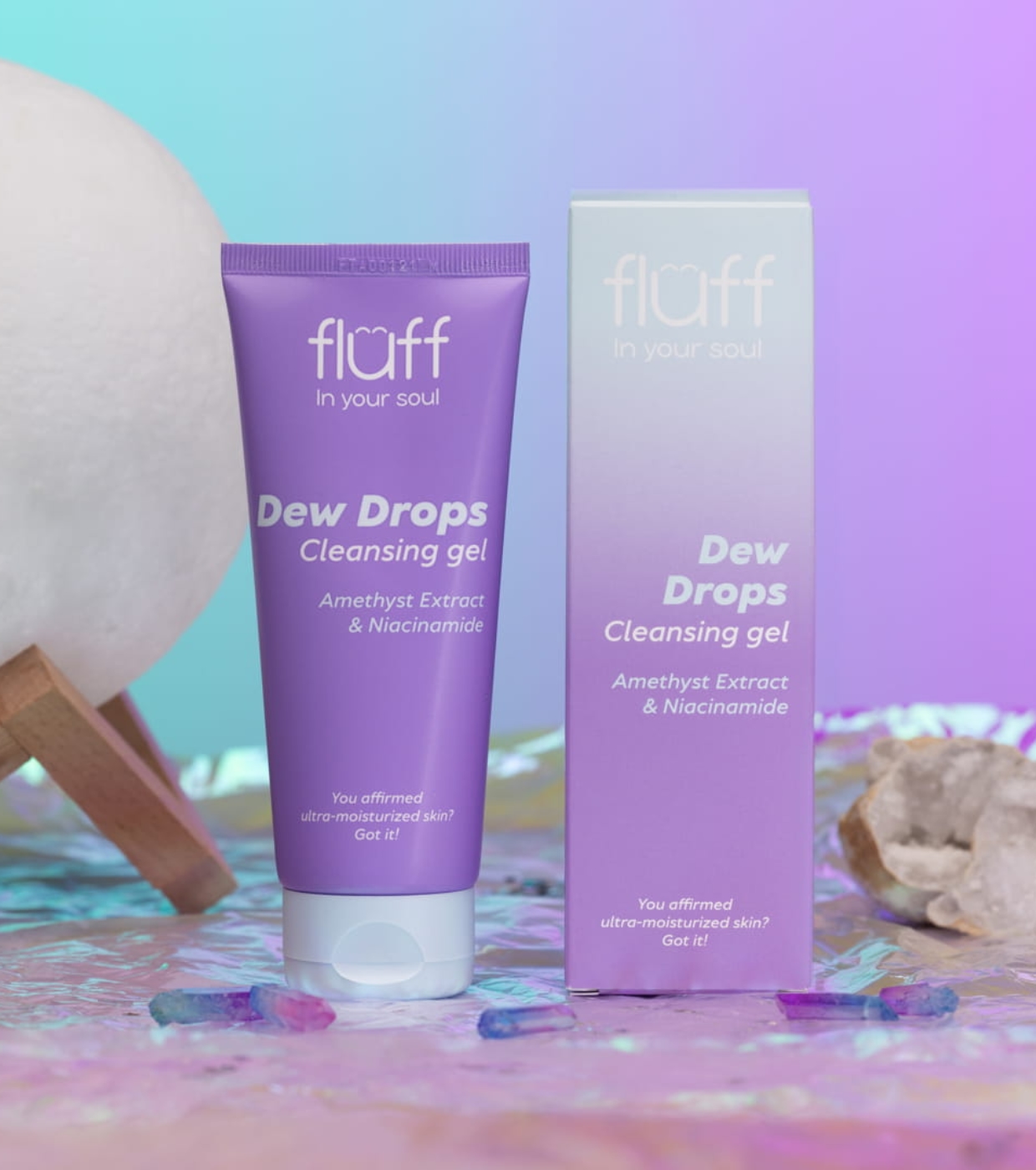 Fluff Amethyst & Niacinamide Facial Cleansing Gel Fluff gently yet effectively cleanses the skin, increasing hydration levels and restoring elasticity.