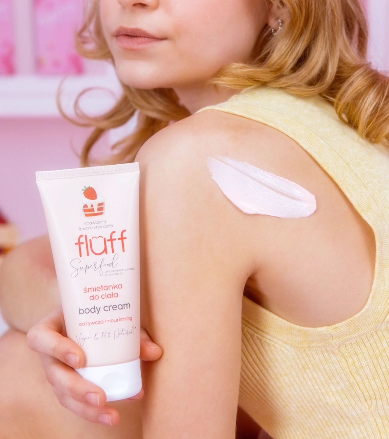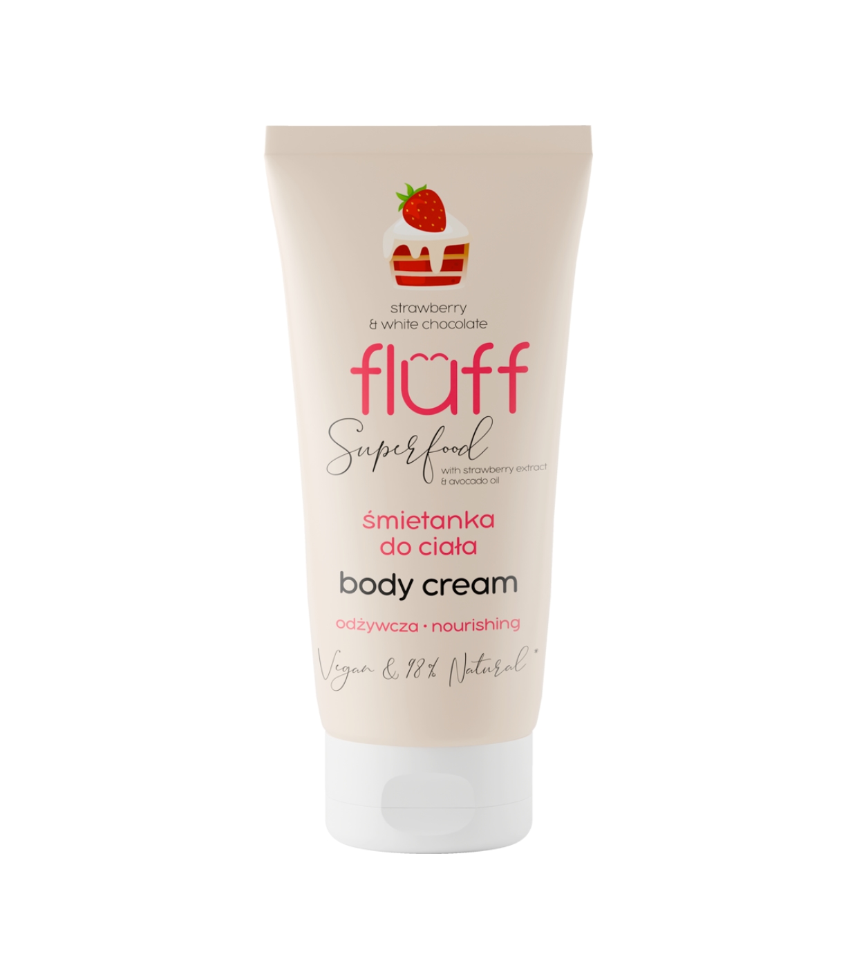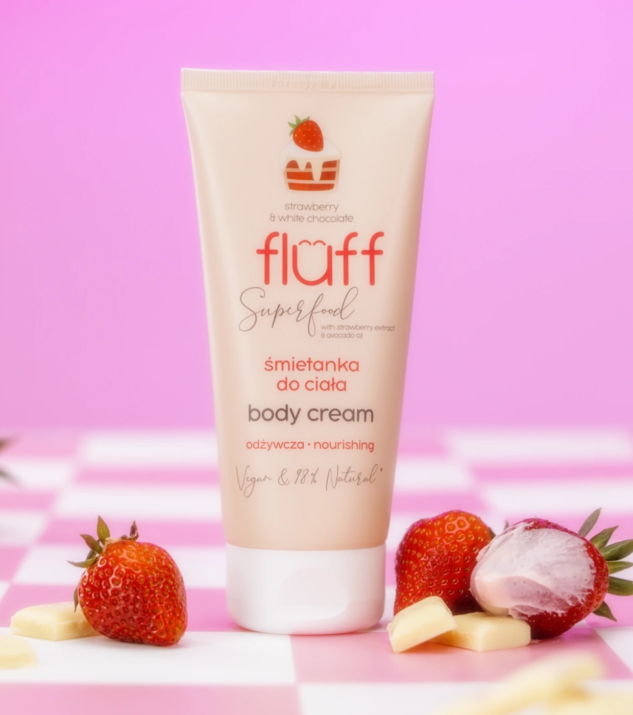 Dry skin? Tired? Treat it to the pampering it deserves with this irresistible strawberry and white chocolate-scented body cream from Fluff , a sensorial delight that combines intense hydration with a luscious, enveloping scent.