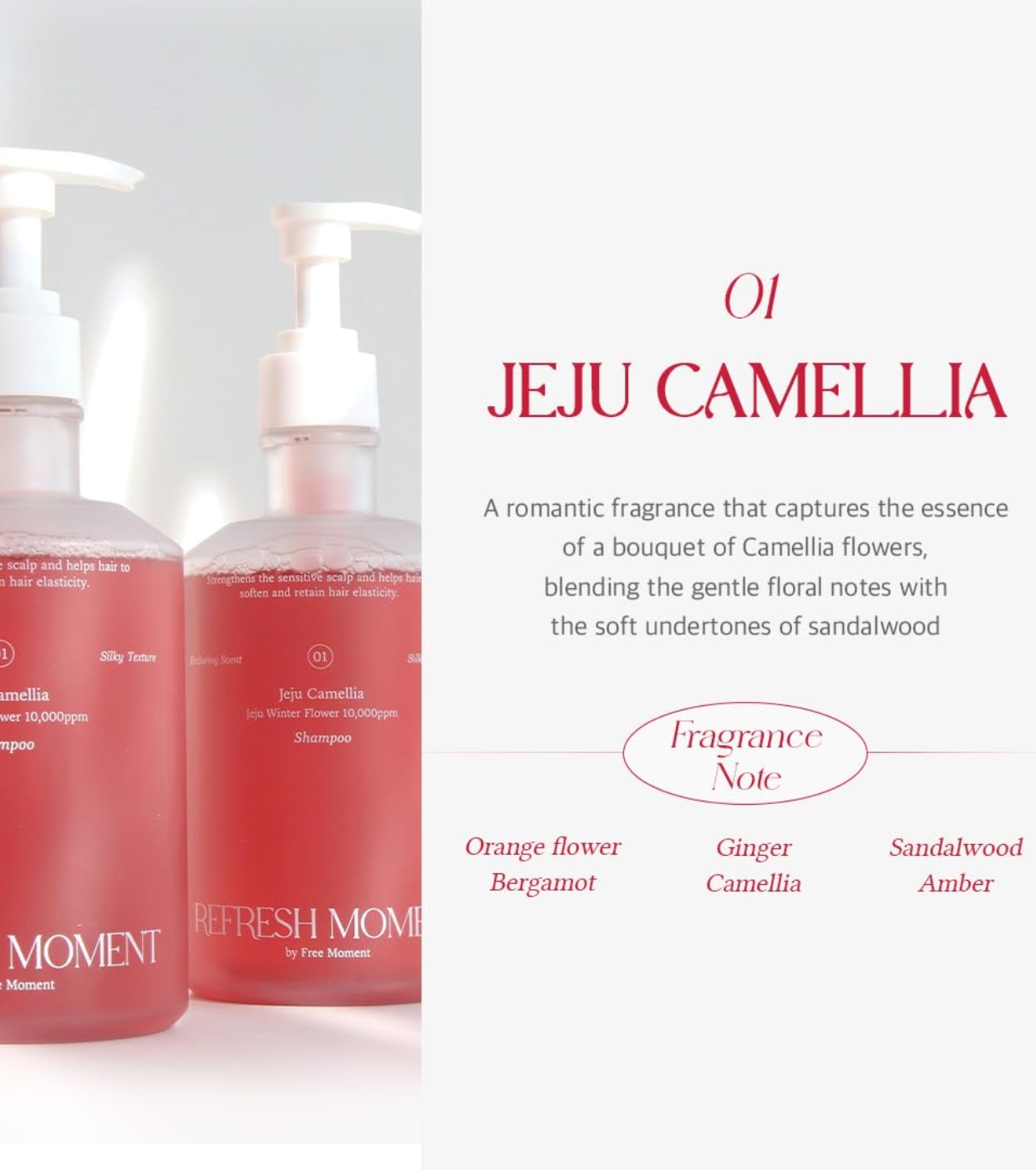 Discover the restorative power of Free Moment Jeju Camellia Shampoo , formulated with Jeju camellia flower extract and 17 essential amino acids.
