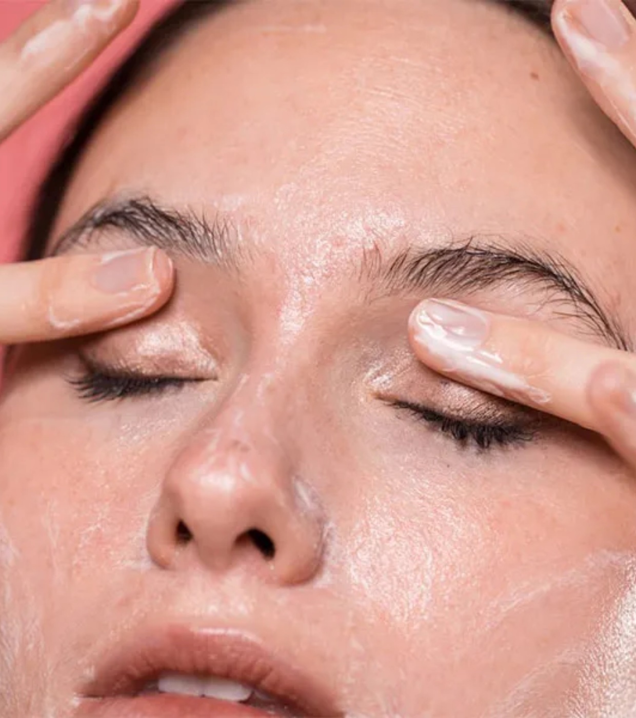 2. Wet your face and apply 2 pumps of the Rose Quartz Facial Cleanser.