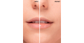 2. Start in the center of the upper lip and continue spreading the product to both sides, reaching the corners. Then, repeat the same action on the lower lip.