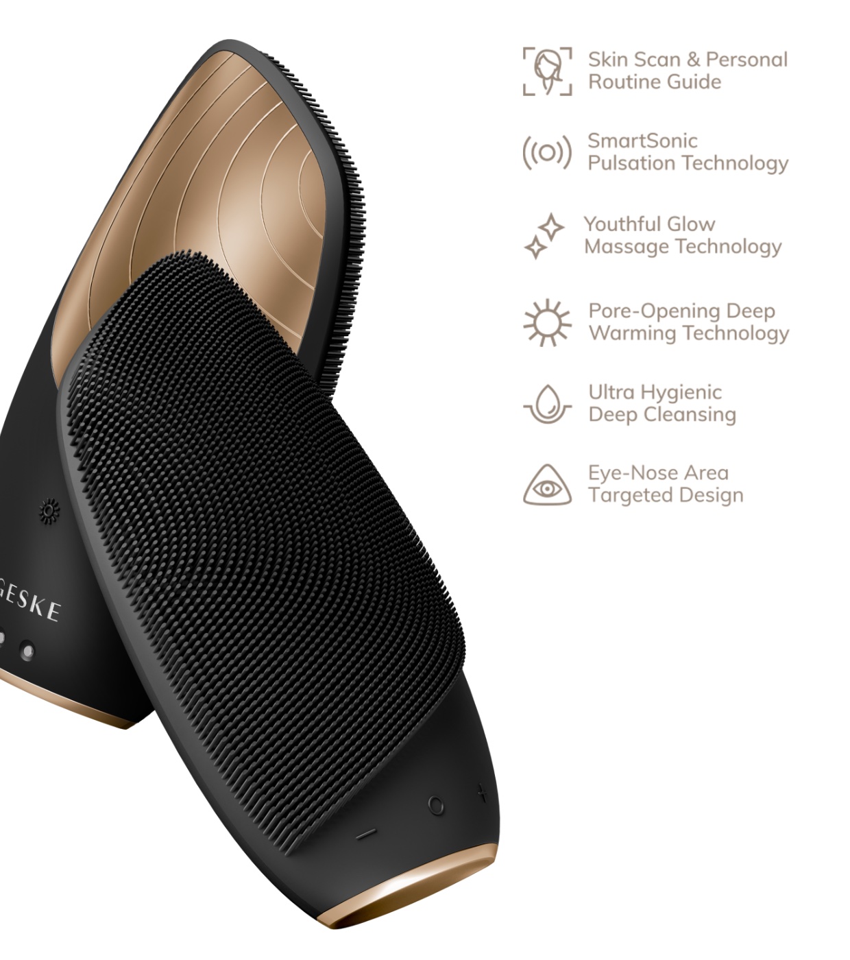 SmartAppGuided™ Sonic Thermo Facial Brush is an all-in-one facial cleanser, thermal brush and massager.