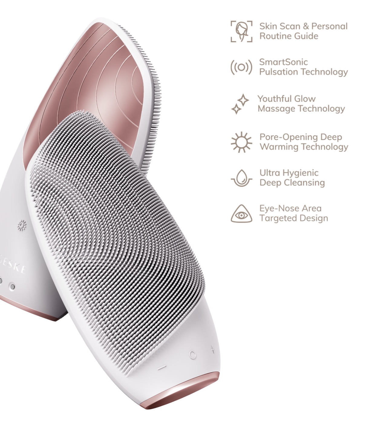 SmartAppGuided™ Sonic Thermo Facial Brush is an all-in-one facial cleanser, thermal brush and massager.