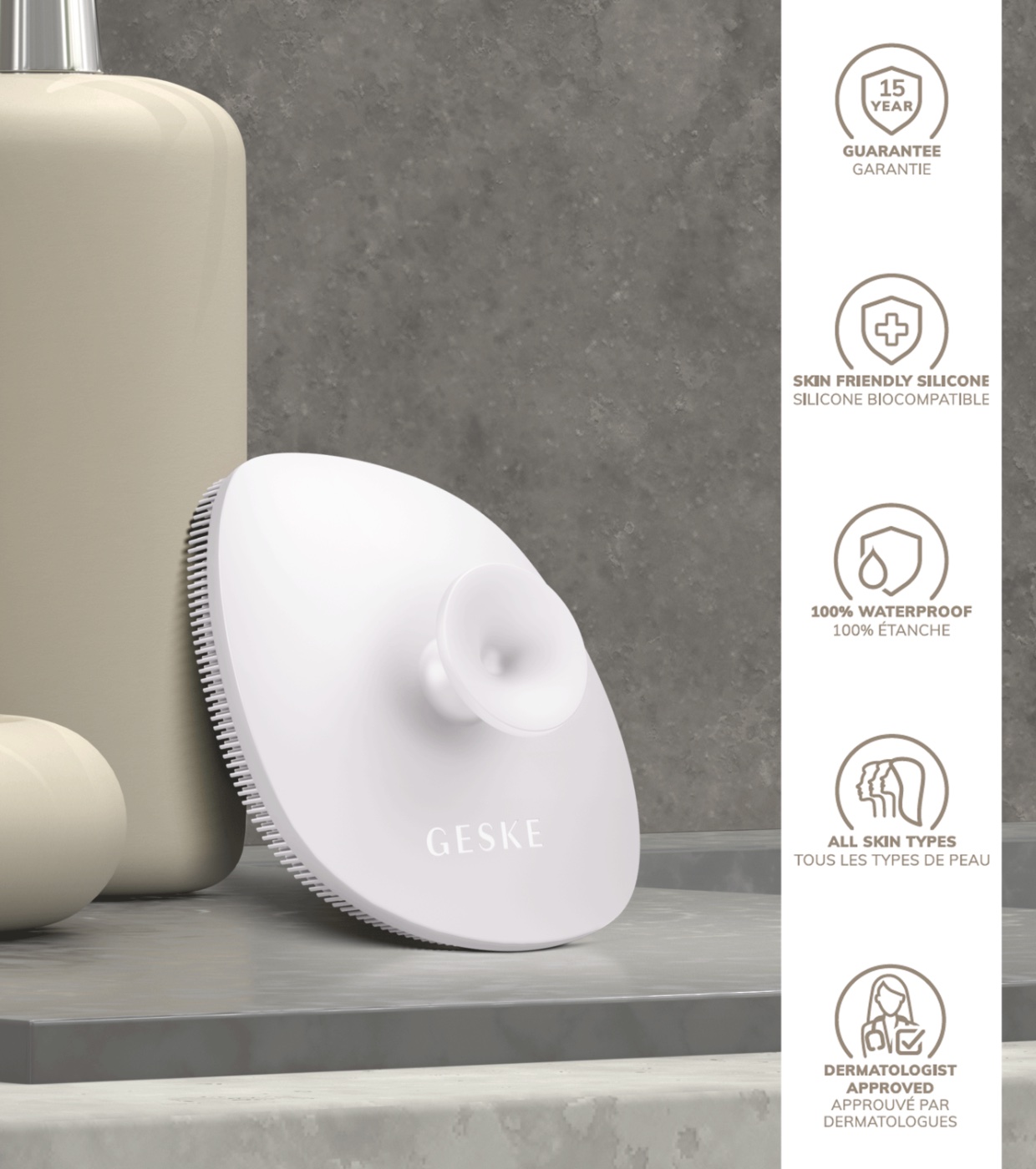 GESKE's SmartAppGuided™ Facial Brush offers ultra-hygienic deep cleansing, ideal for your daily skin care routine.