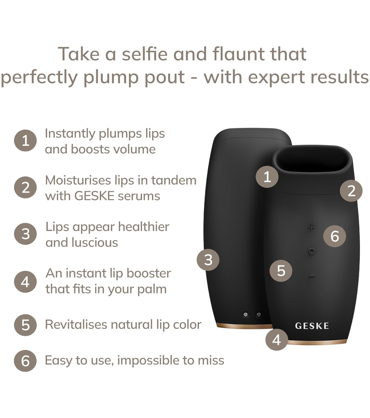 The Lip Volumizer & Booster device from Geske is a state-of-the-art beauty device designed to keep lips fuller, more defined and youthful-looking day after day.