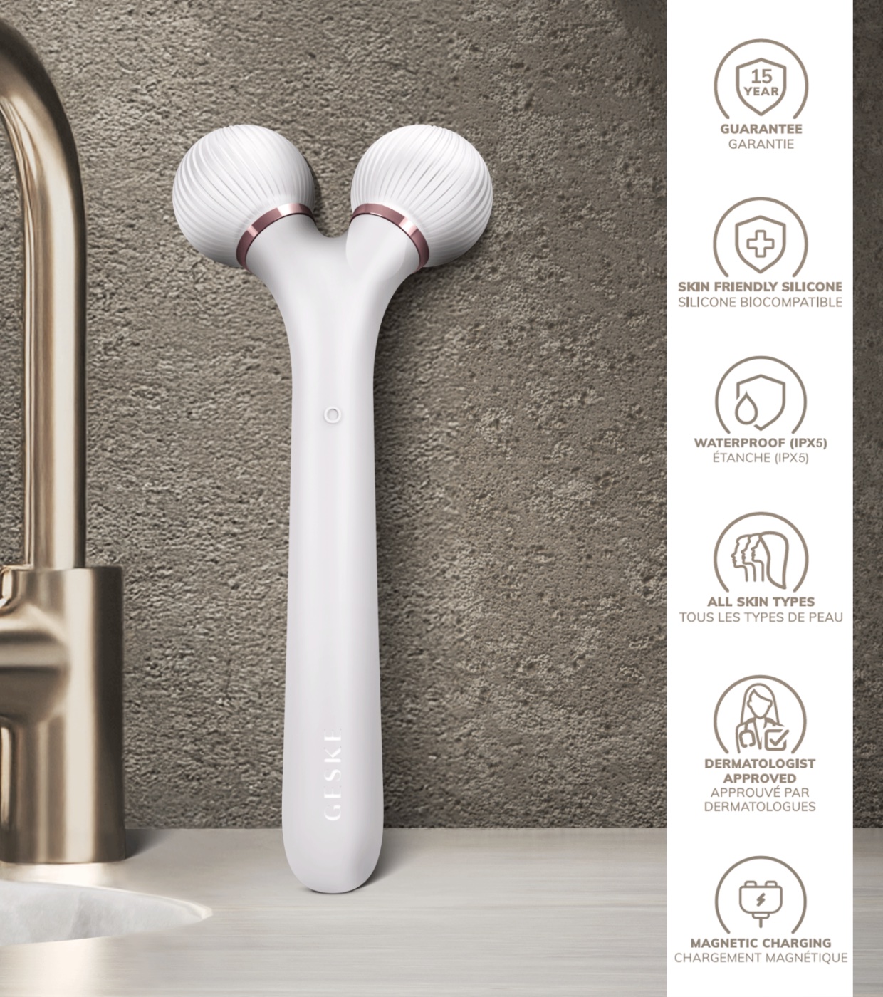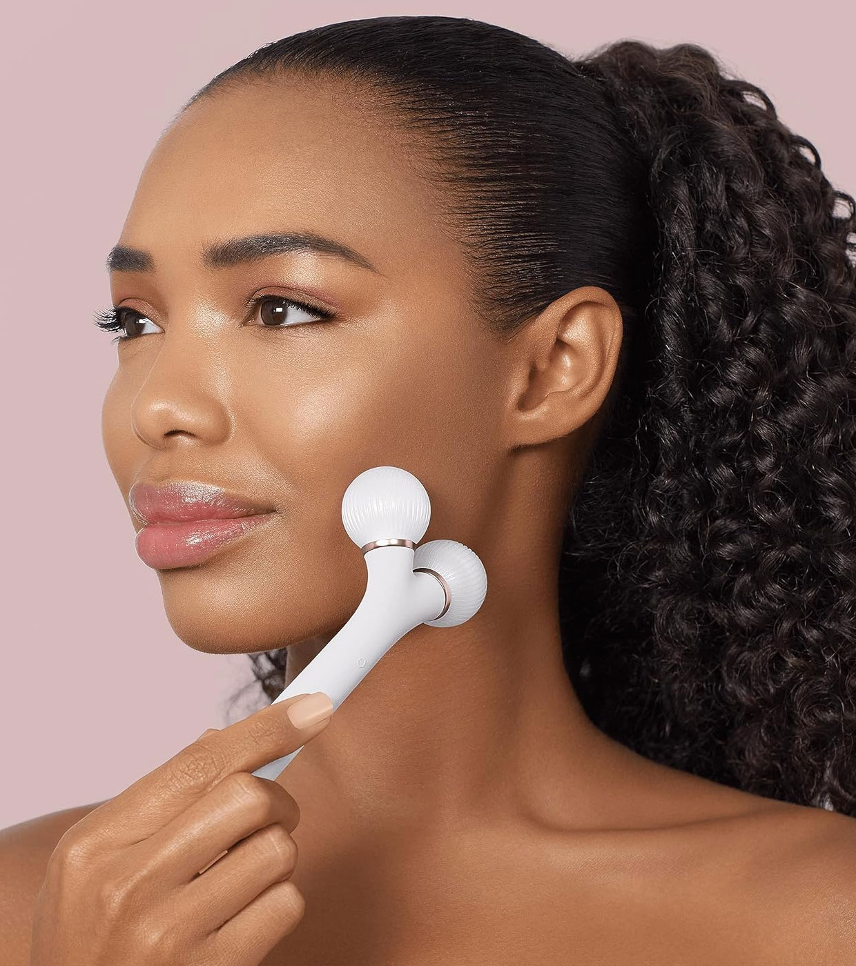 This sonic facial roller is designed to visibly tighten and refine skin and facial contours.