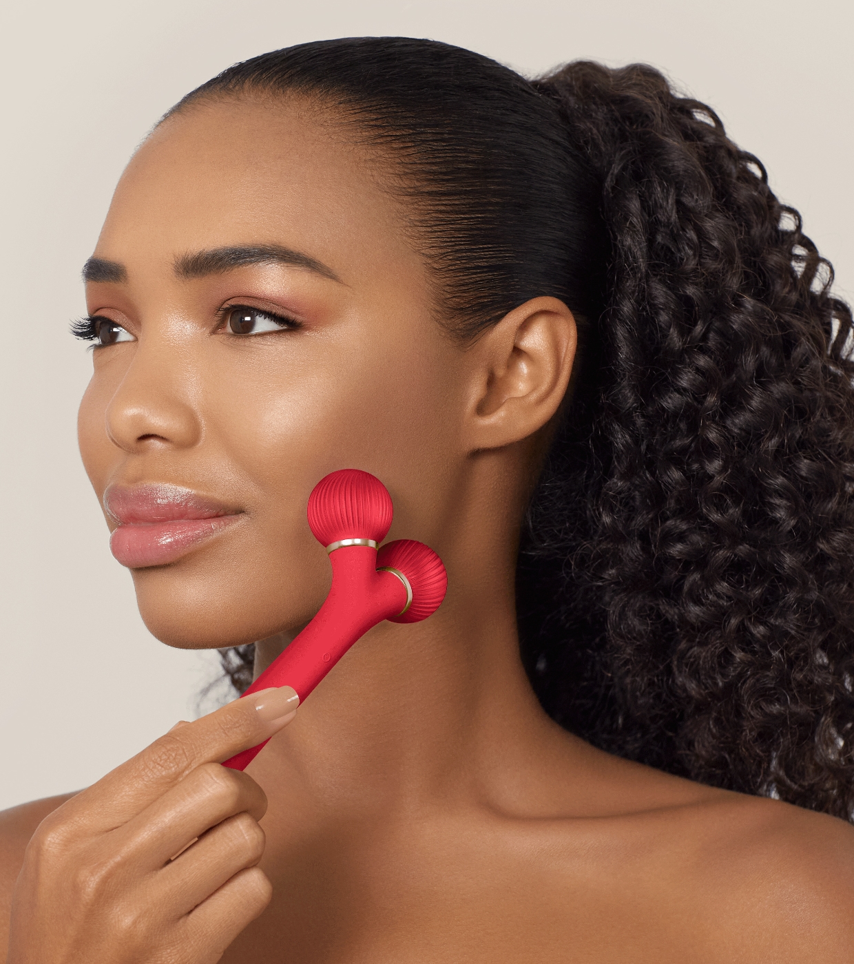 This sonic facial roller is designed to visibly tighten and refine skin and facial contours.