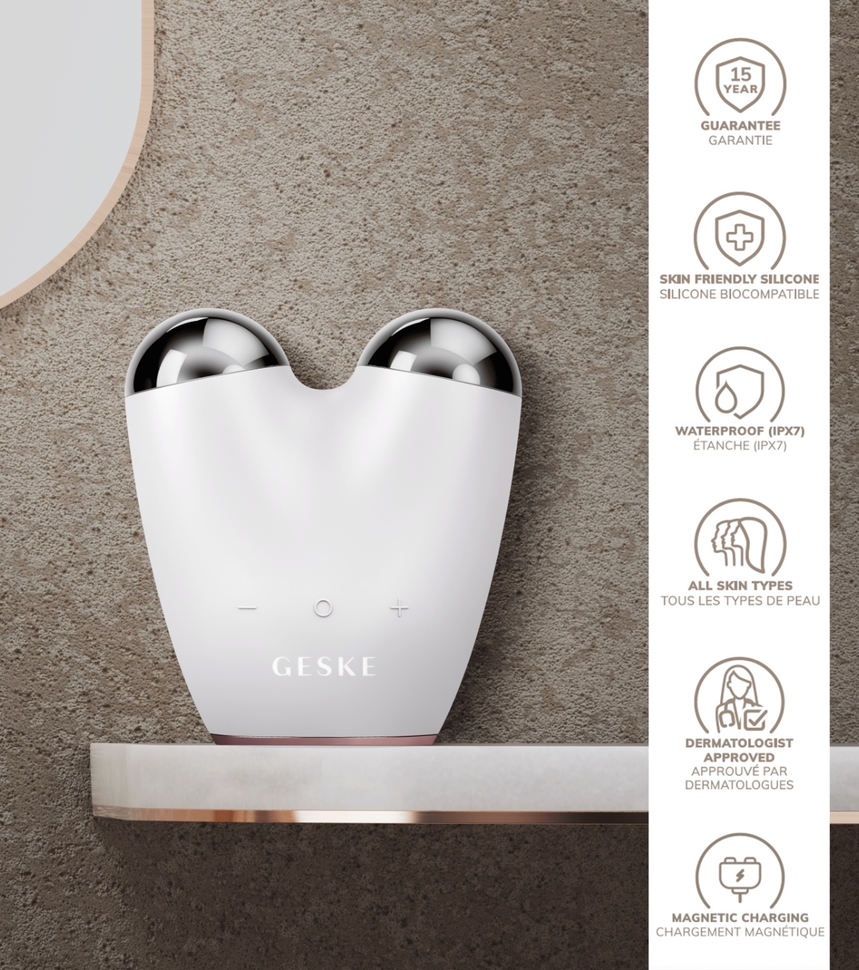 Achieve a firmer, more contoured face with GESKE's innovative Microcurrent Face-Lifter 6 In 1 .