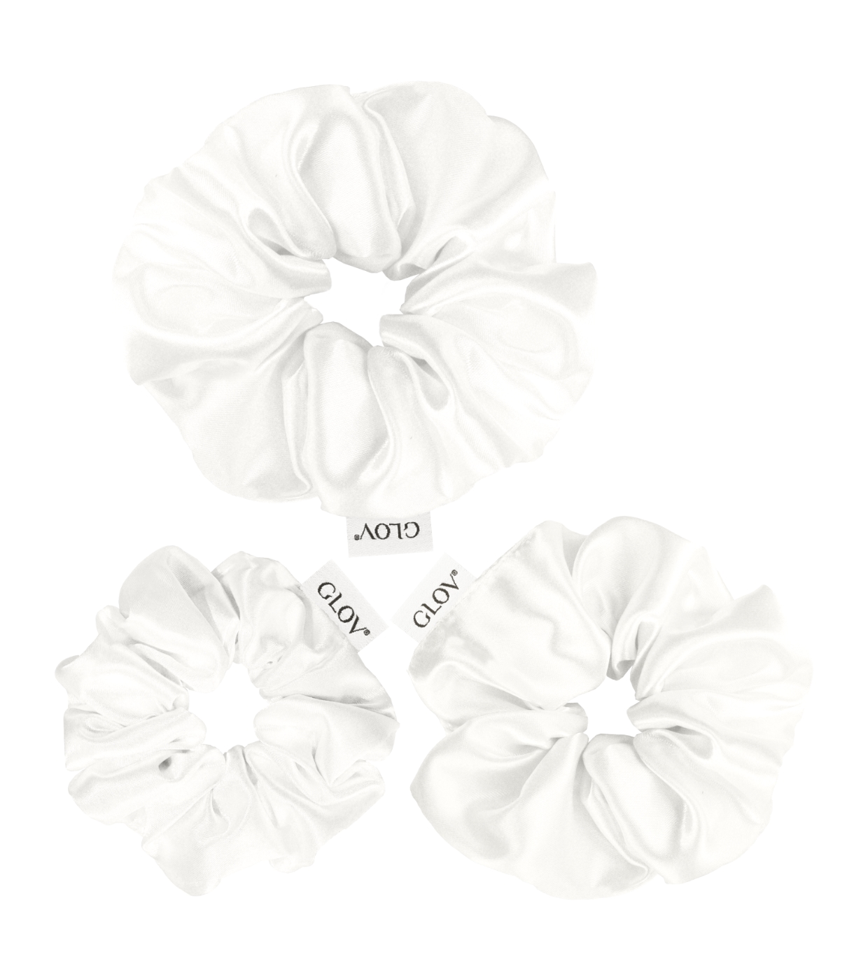 GLOV - Pack of 3 scrunchies Satin Scrunchies sizes S/M/L - White