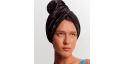 This turban is double-sided: on one side satin and on the other absorbent fabric.