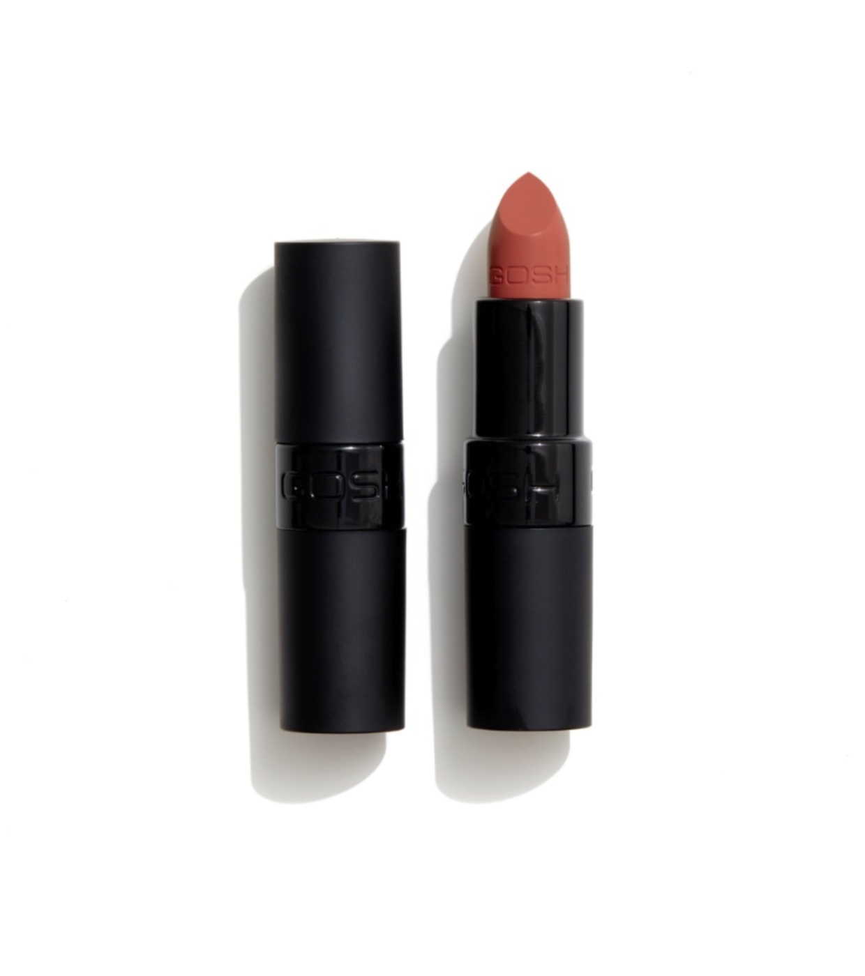 The Velvet Touch lipstick from Gosh combines the elegance of a matte finish with a creamy, moisturizing texture that glides smoothly over the lips, leaving an intense, even, and long-lasting color from the first stroke.