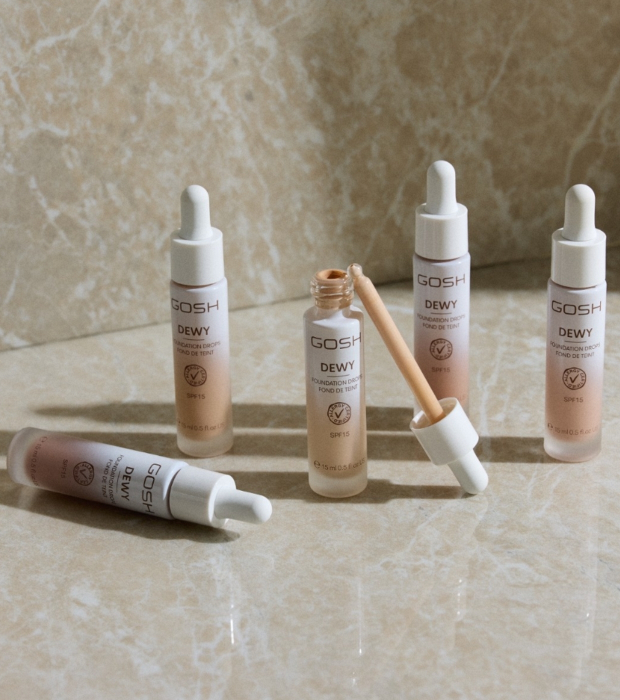 Dewy Foundation Drops's Gosh are the perfect liquid foundation to achieve light, luminous coverage and a "glass skin" effect.