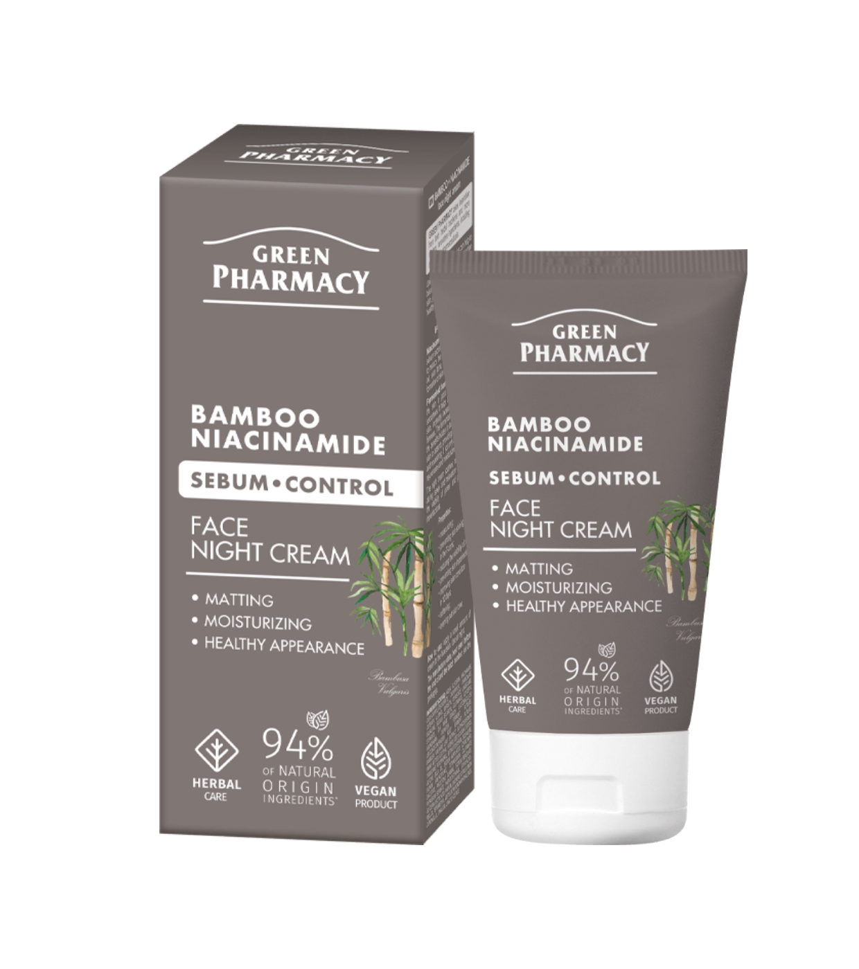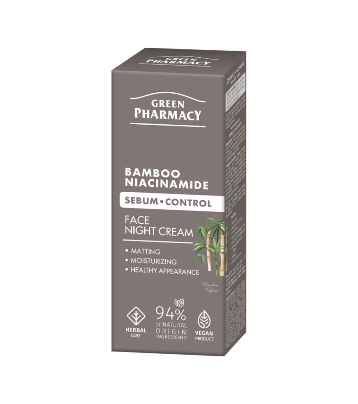 Discover the sebum control night facial cream with Bamboo and Niacinamide from Green Pharmacy .