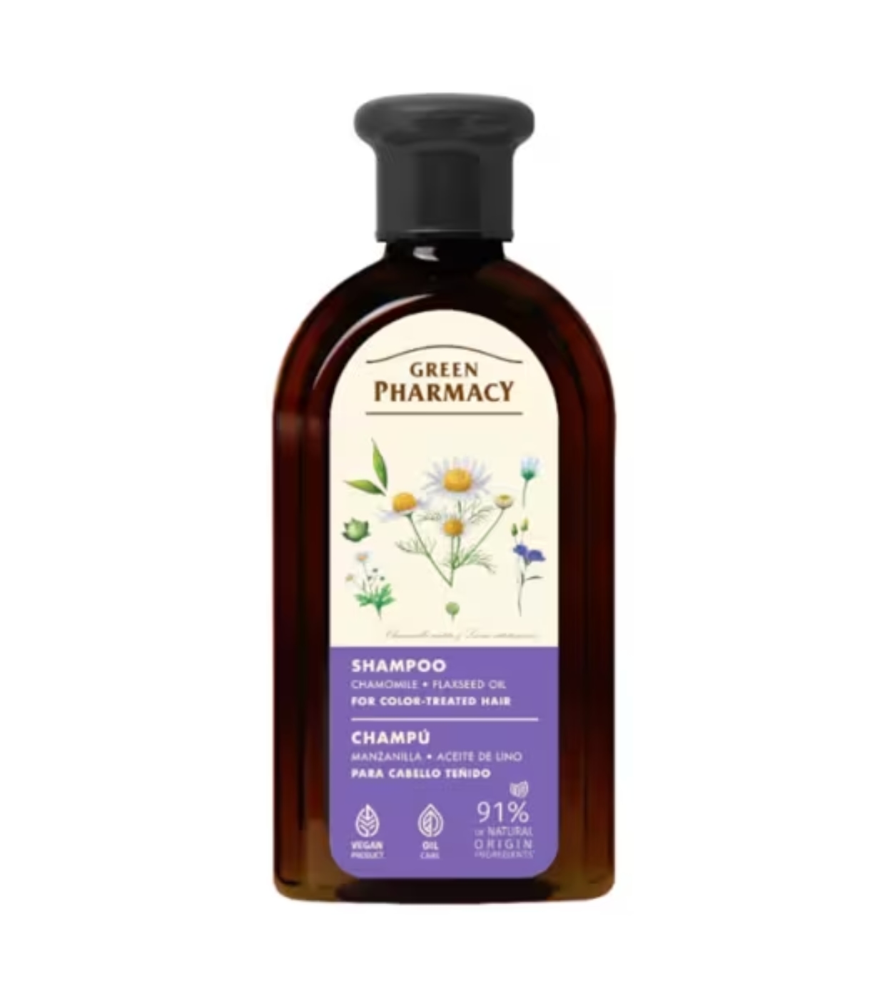 Care for your dyed hair gently and effectively with this shampoo enriched with chamomile extract and flaxseed oil from Green Pharmacy .
