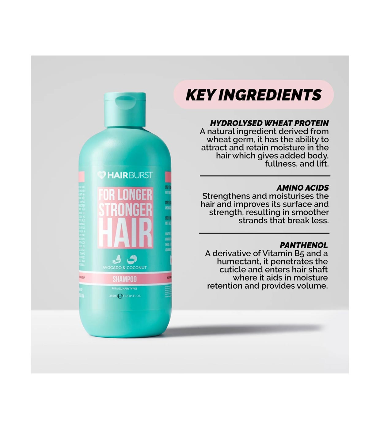 Aqua (Water), Ammonium Lauryl Sulfate, Cocamidopropyl Betaine, Glycerin, Sodium Chloride, Sodium Lauroyl Sarcosinate, Hydrolyzed Wheat Protein, Coco-Glucoside, Sodium Benzoate, Polyquaternium-22, Citric Acid, Glycol Distearate, Panthenol, Parfum (Fragrance), Myristamide DIPA, Hydroxypropyl Guar Hydroxypropyltrimonium Chloride, Sodium PCA, Sodium Lactate, Disodium EDTA, Arginine, Aspartic Acid, PCA, Tocopheryl Acetate, Glycine, Alanine, Serine, Valine, Isoleucine, Proline, Threonine, Histidine, Phenylalanine, Amyl Cinnamal, Coumarin.