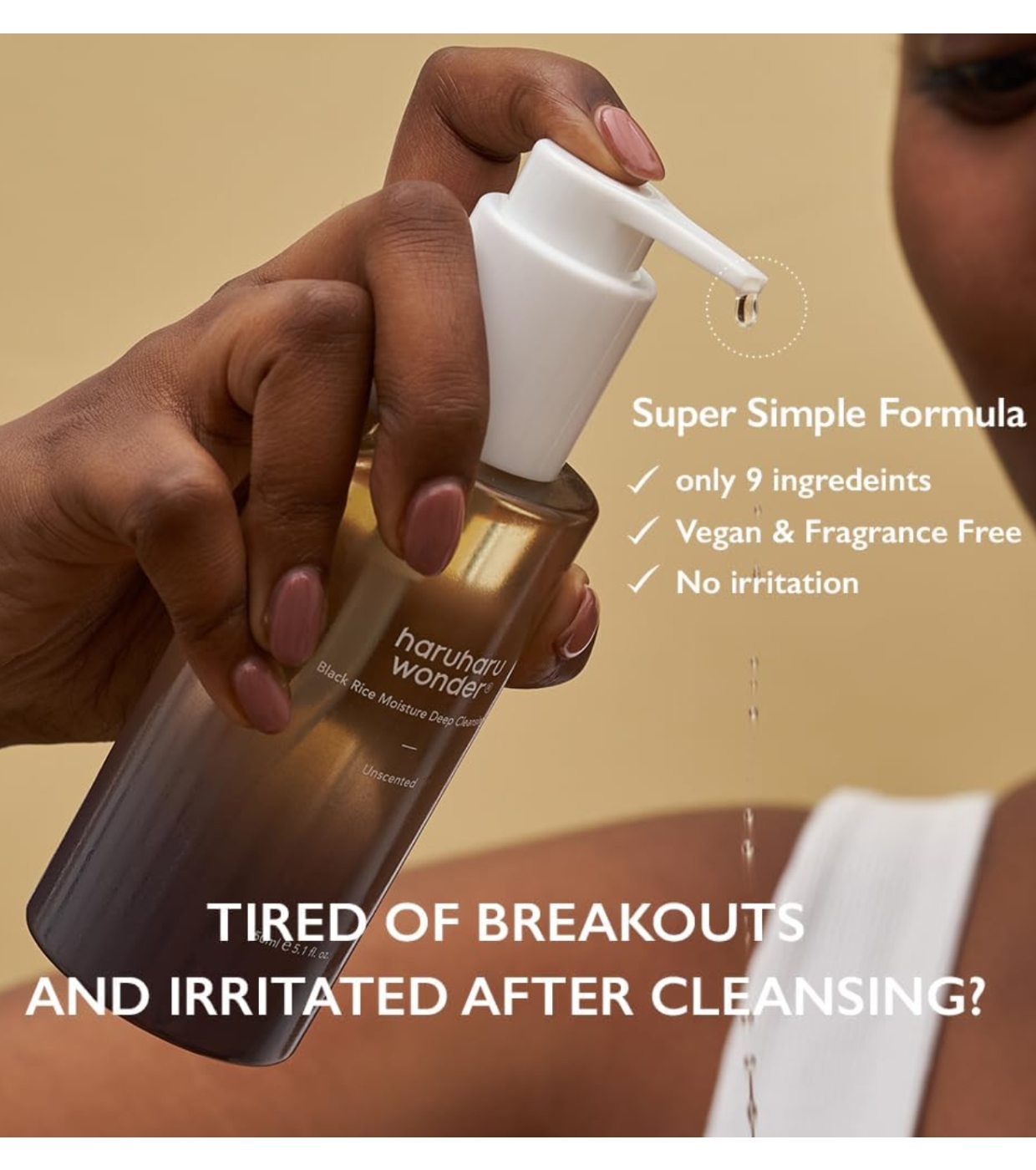 This Black Rice Deep Cleansing Oil from Haruharu Wonder is a gentle, effective, and skin-friendly facial cleanser, ideal for the first phase of double cleansing.