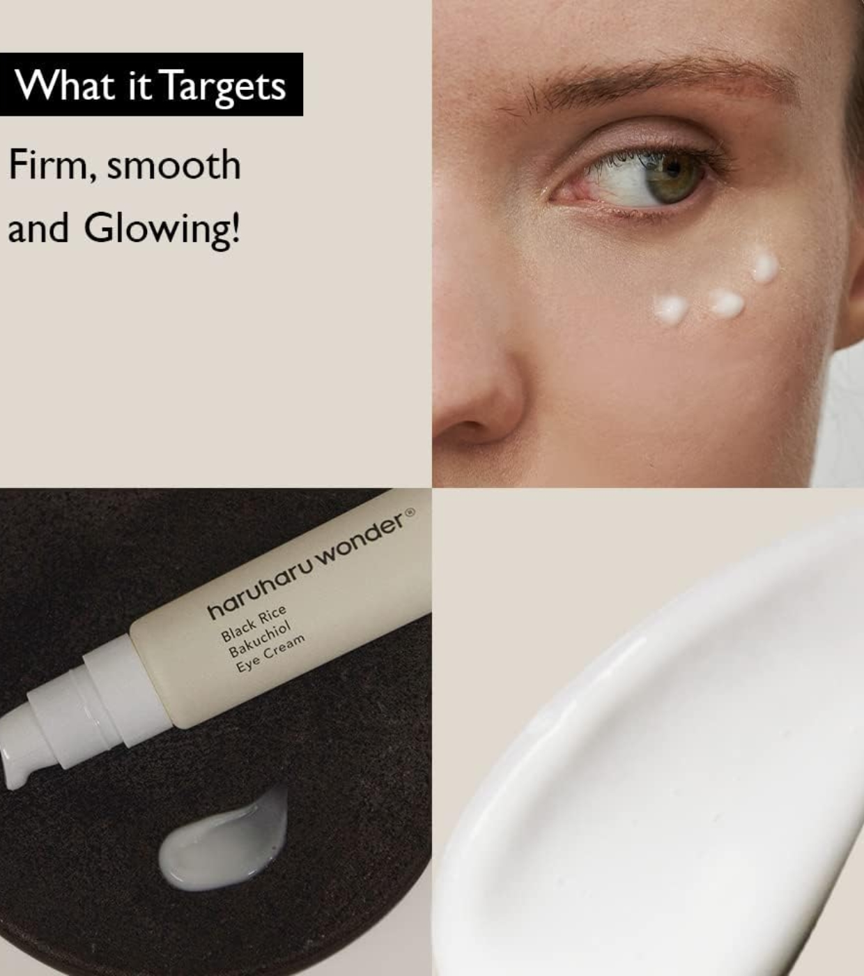 Improve the appearance of wrinkles and fine lines with this potent Black Rice Bakuchiol eye cream from Haruharu Wonder , formulated with 5000 ppm of bakuchiol, a plant-based alternative to retinol, and 2000 ppm of Korean black rice extract, known for its moisturizing and antioxidant properties.